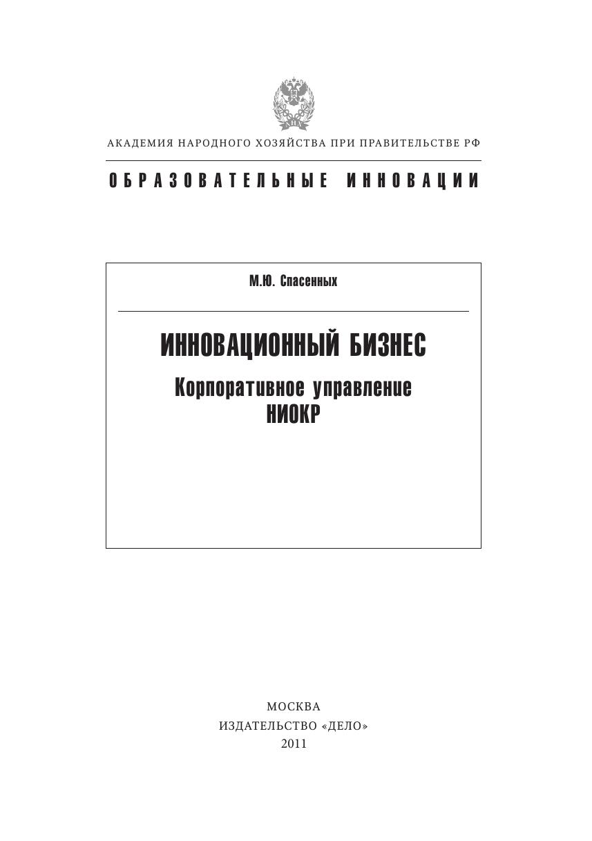 Инновационный бизнес: корпоративное управление НИОКР