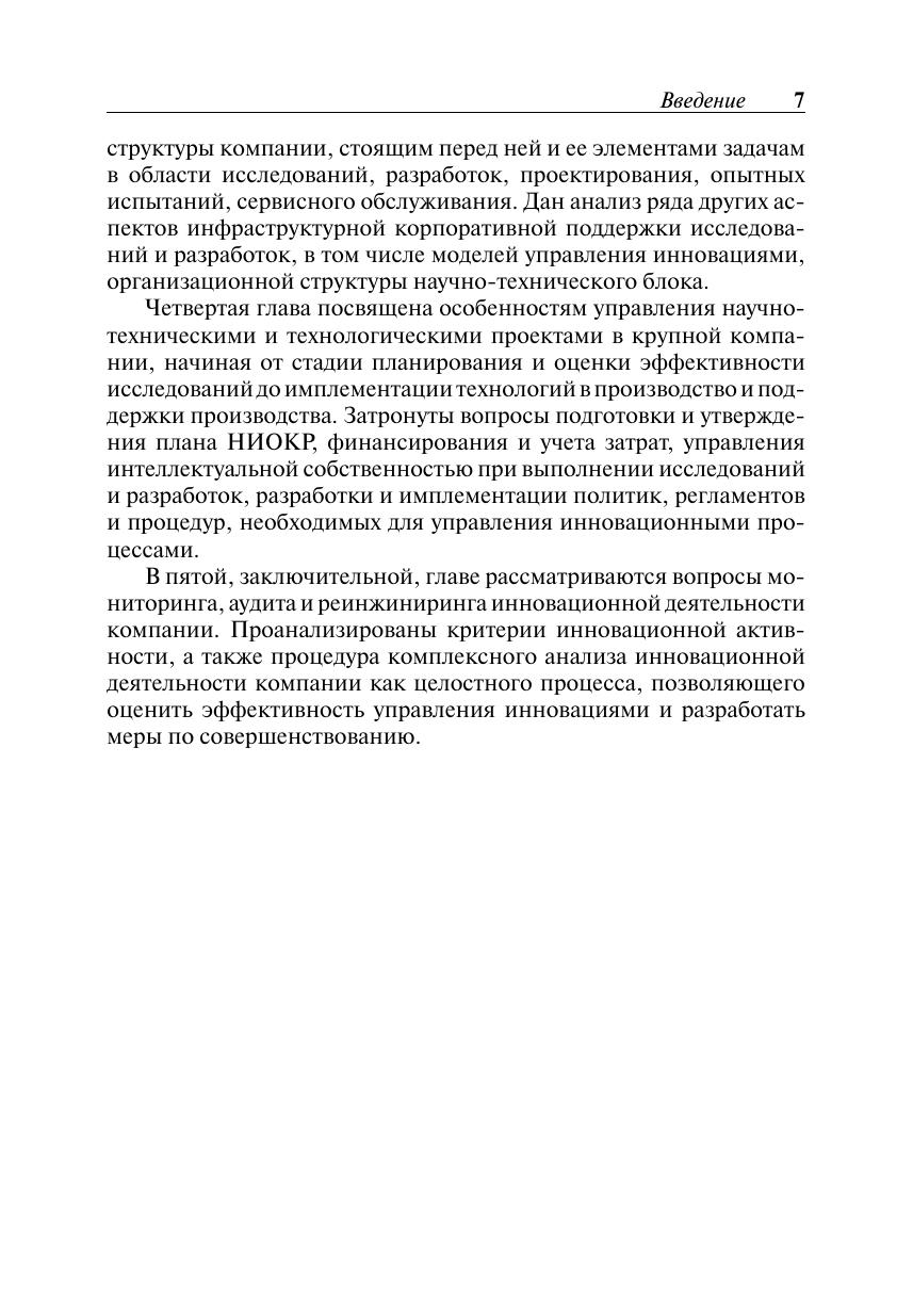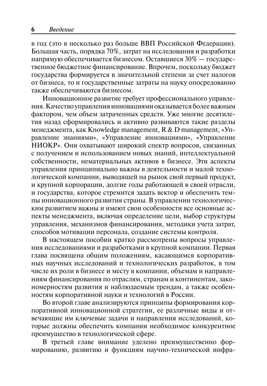 Серия Образовательные инновации. Рассмотрены роль и тенденции развития научно-технического сектора в современном бизнесе. Проанализированы различные аспекты инфраструктурной корпоративной поддержки НИОКР. Особое внимание уделено принципам формирования корпоративной стратегии, обеспечивающей конкурентное преимущество в технологической сфере, а также вопросам мониторинга и аудита инновационной деятельности крупной компании.