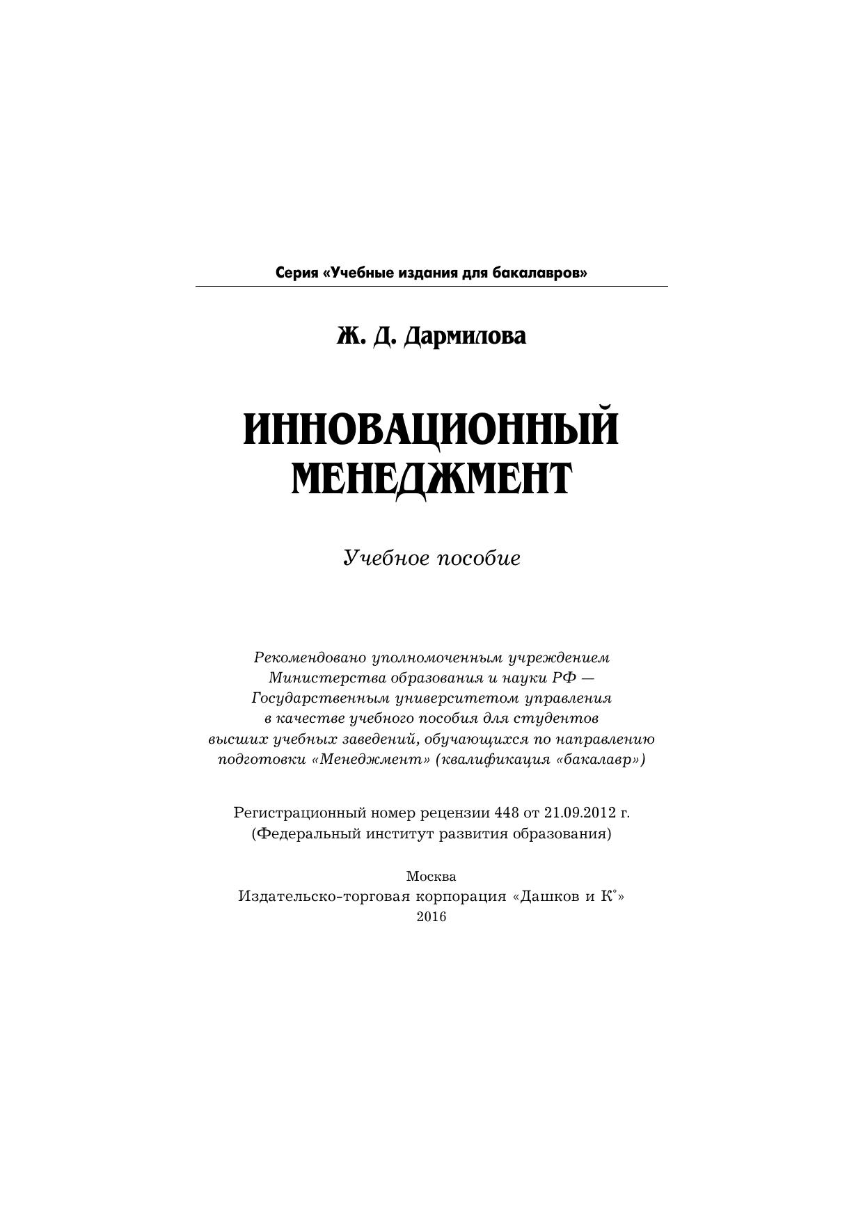 Инновационный менеджмент: Учебное пособие для бакалавров