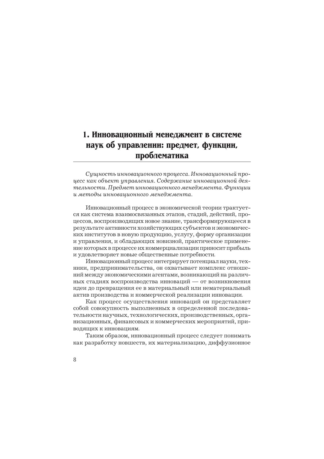 В учебном пособии кратко излагается курс по управлению инновациями на предприятии. В нем раскрываются основные понятия инновационного менеджмента, классификация инноваций, технологии управления инновационным процессом, методы экспертизы и оценки рисков и эффективности инновационных проектов, рыночные технологии инновационного менеджмента. Для студентов бакалавриата, обучающихся по направлению подготовки “Менеджмент”, а также предпринимателей,