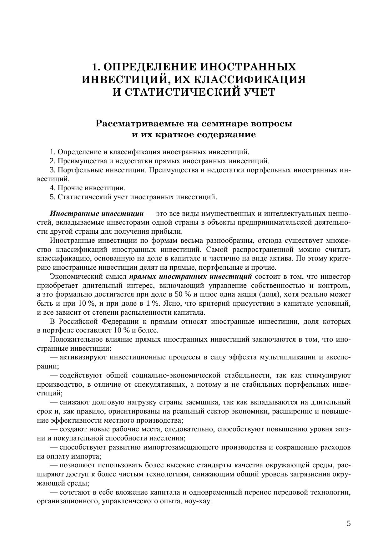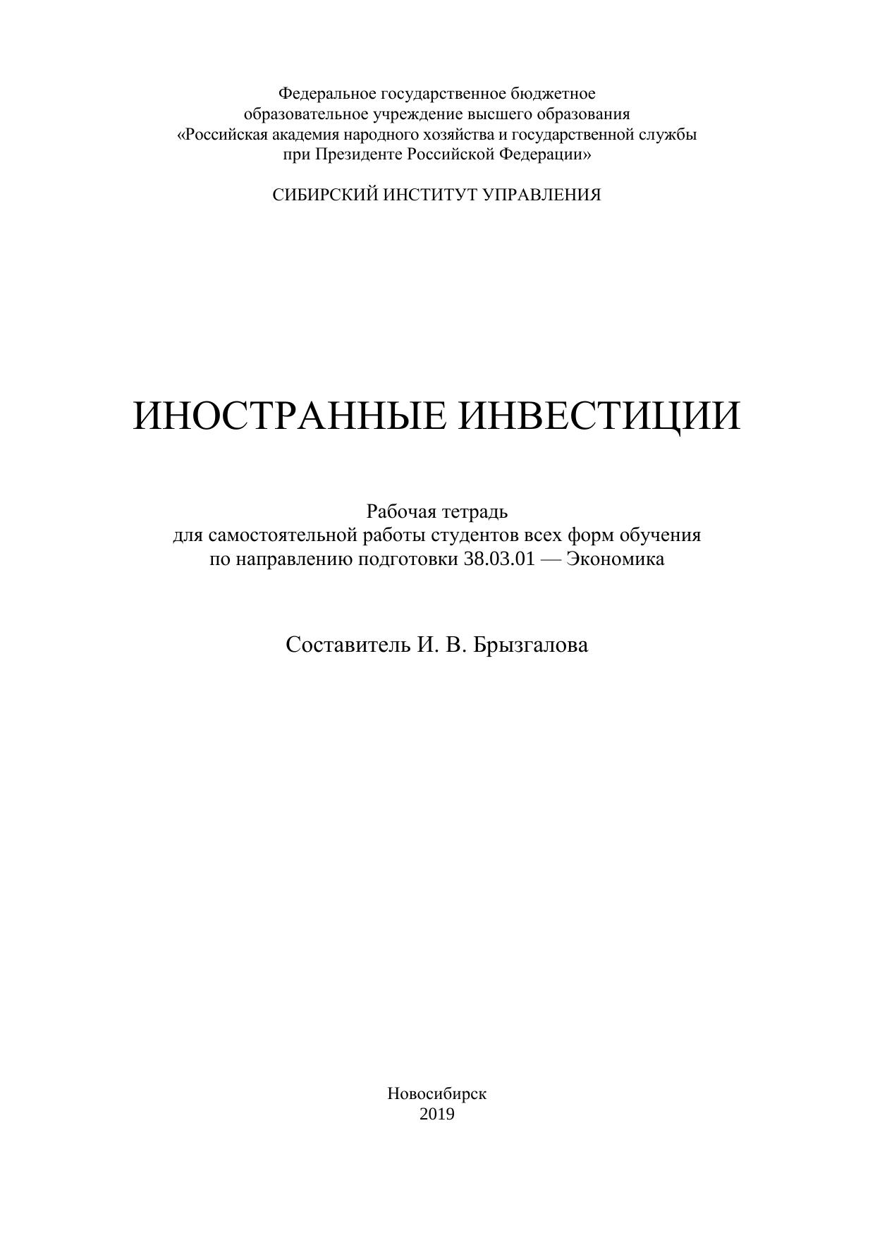 Иностранные инвестиции: рабочая тетрадь