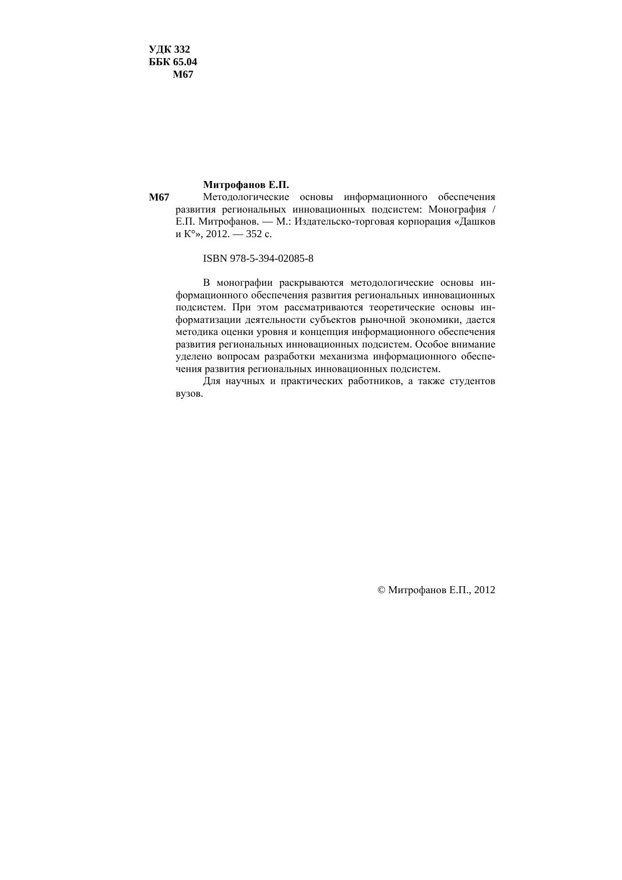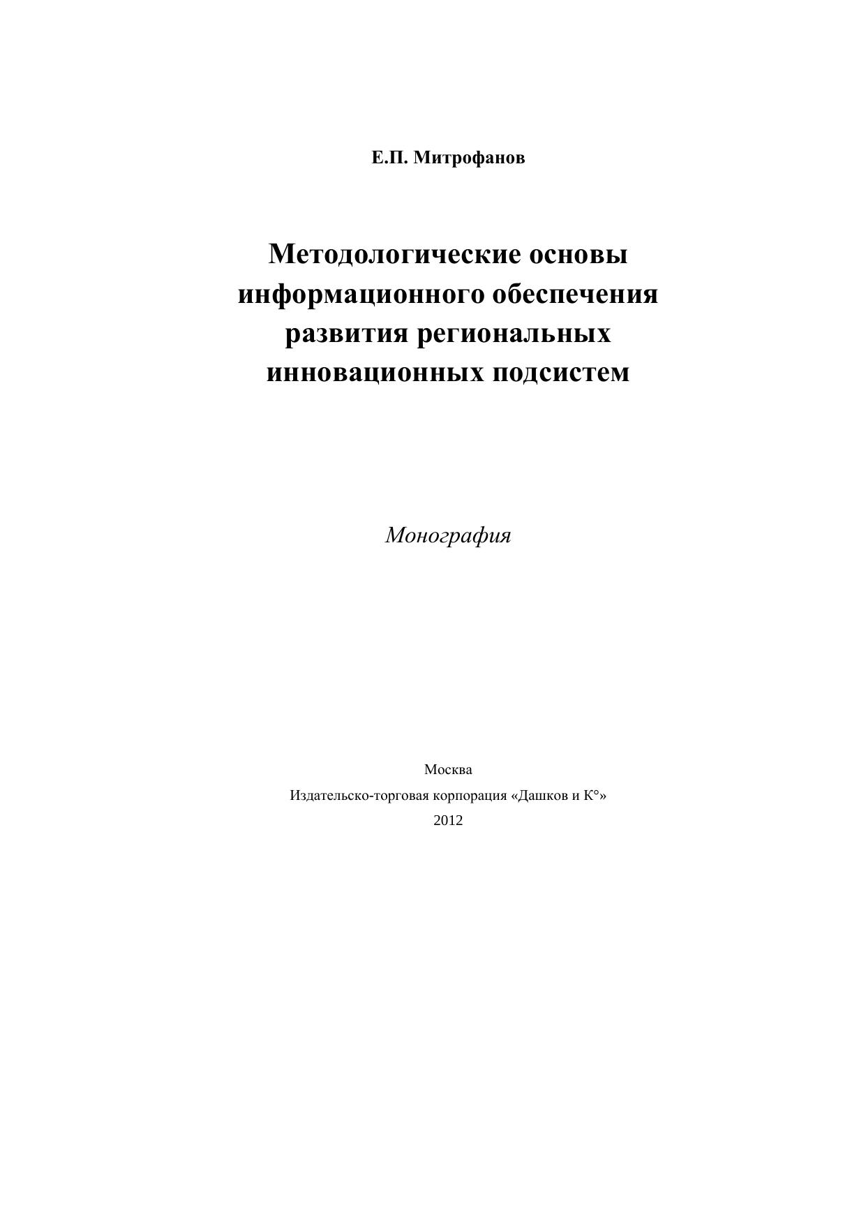 В монографии раскрываются методологические основы информационного обеспечения развития региональных инновационных подсистем. При этом рассматриваются теоретические основы информатизации деятельности субъектов рыночной экономики, дается методика оценки уровня и концепция информационного обеспечения развития региональных инновационных подсистем. Особое внимание уделено вопросам разработки механизма информационного обеспечения развития региональных инновационных подсистем. Для научных и практических работников, а также студентов вузов.