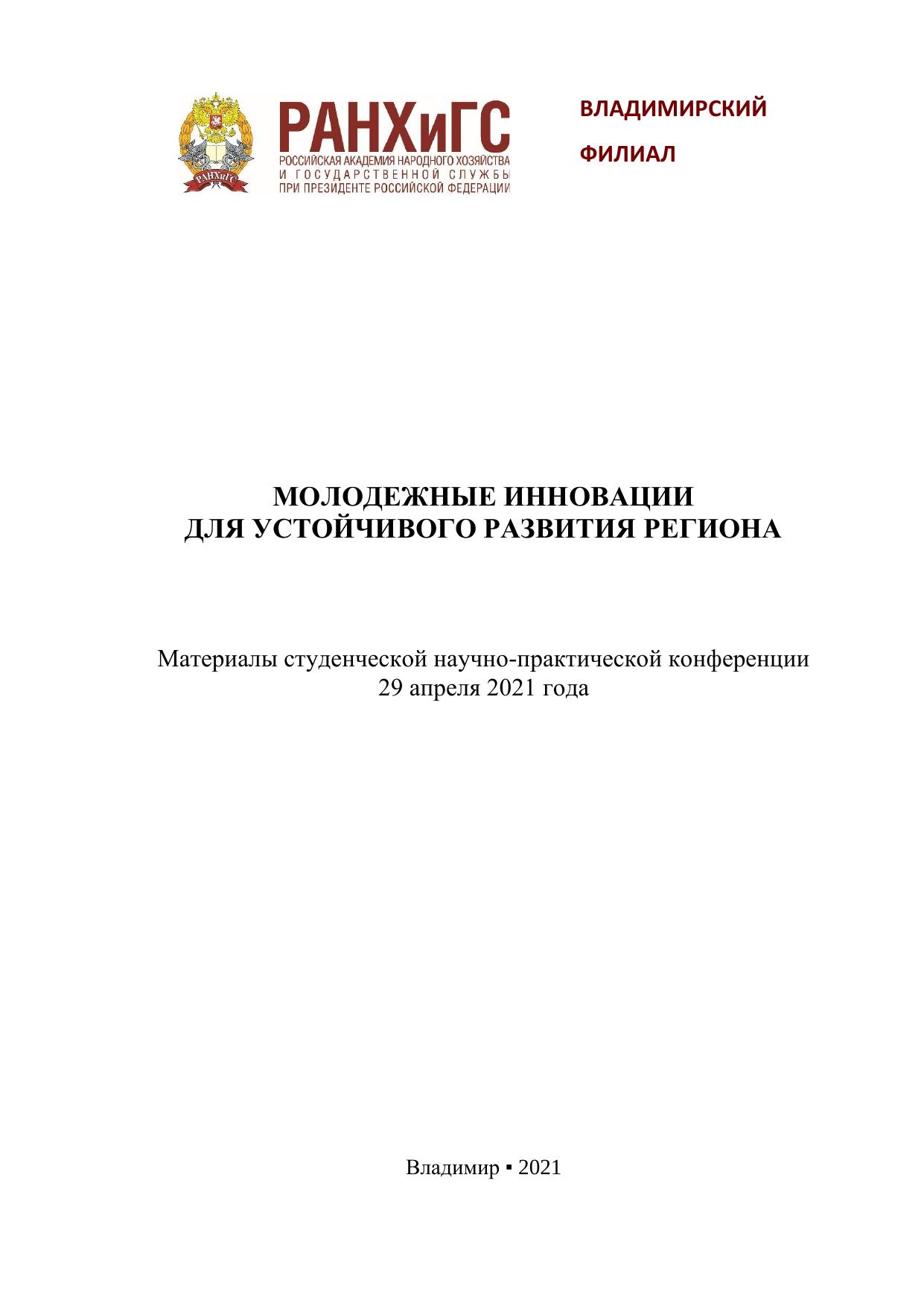 Молодежные инновации для устойчивого развития региона: материалы студенческой научно-практической конференции 29 апреля 2021 года