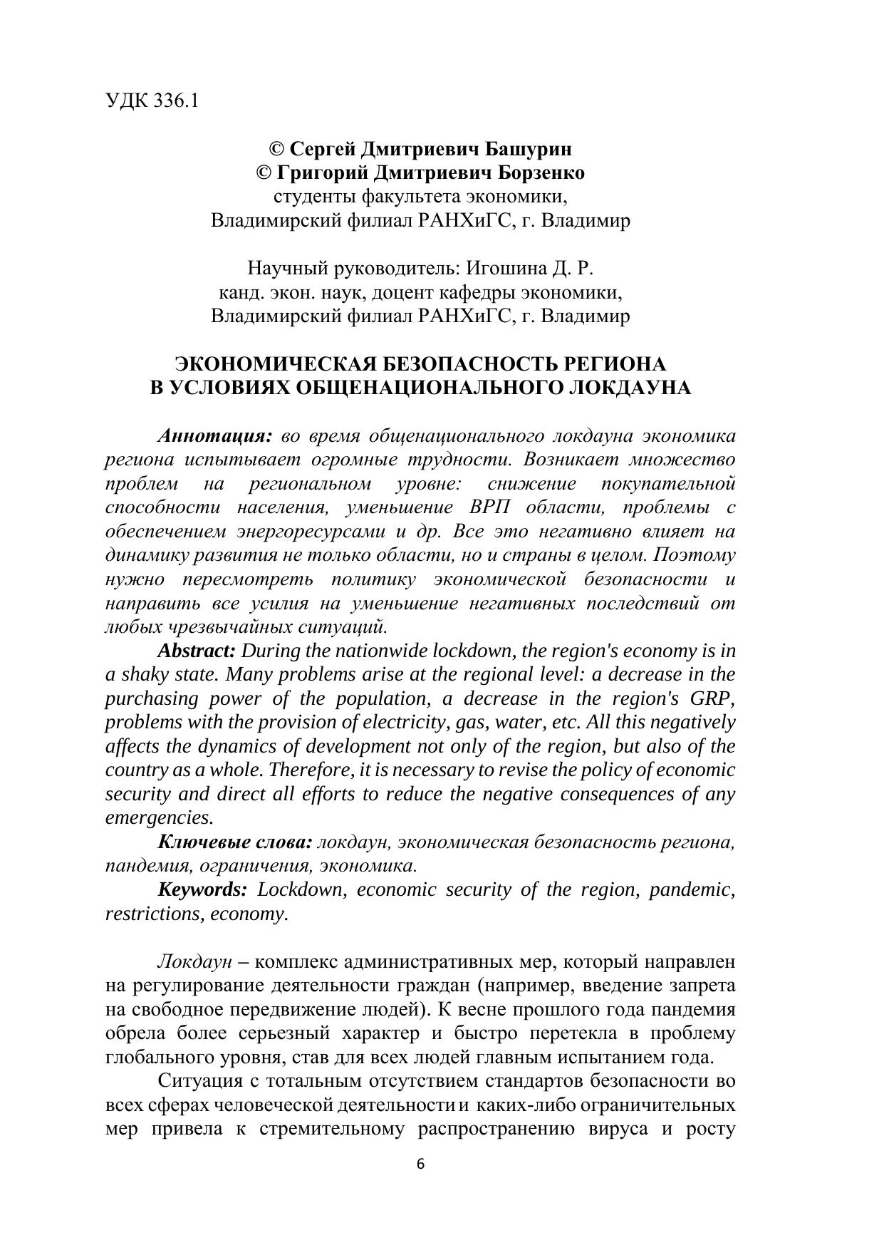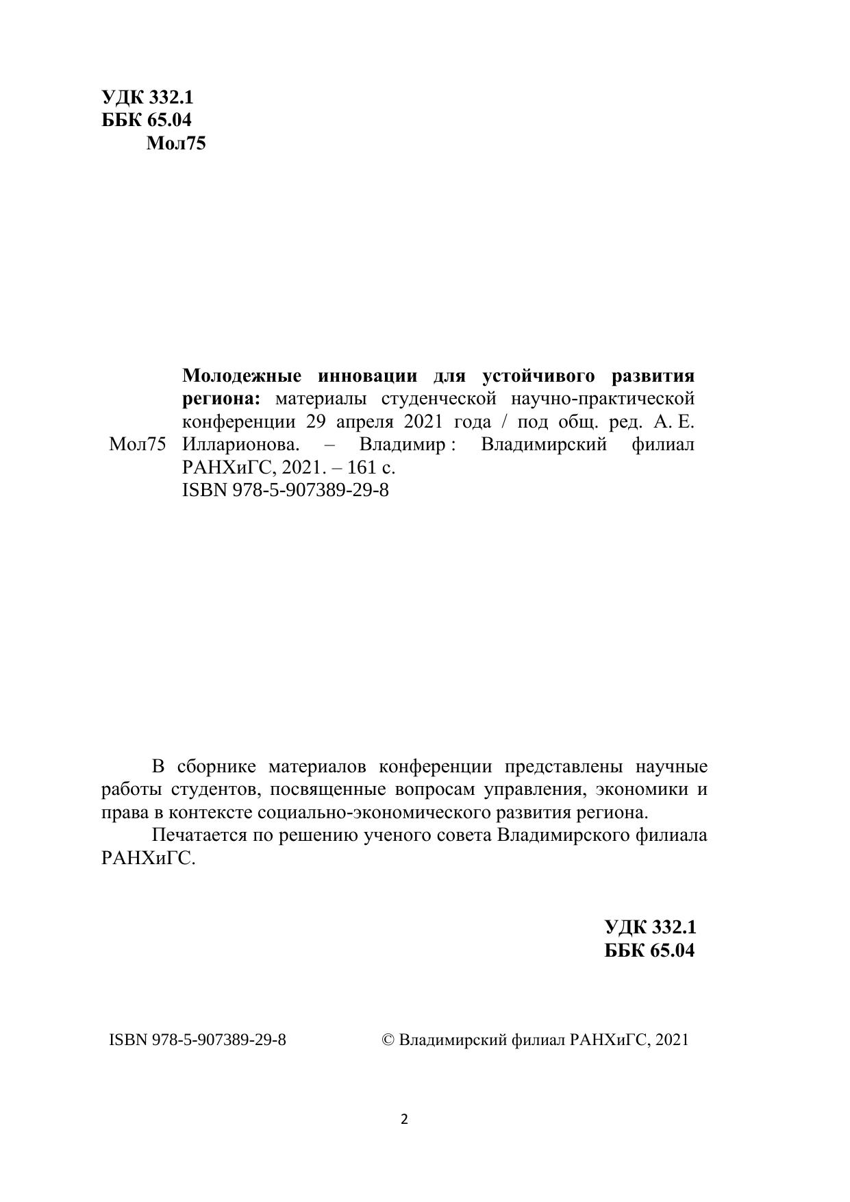 В сборнике материалов конференции представлены научные работы студентов, посвященные вопросам управления, экономики и права в контексте социально-экономического развития региона. Печатается по решению ученого совета Владимирского филиала РАНХиГС.