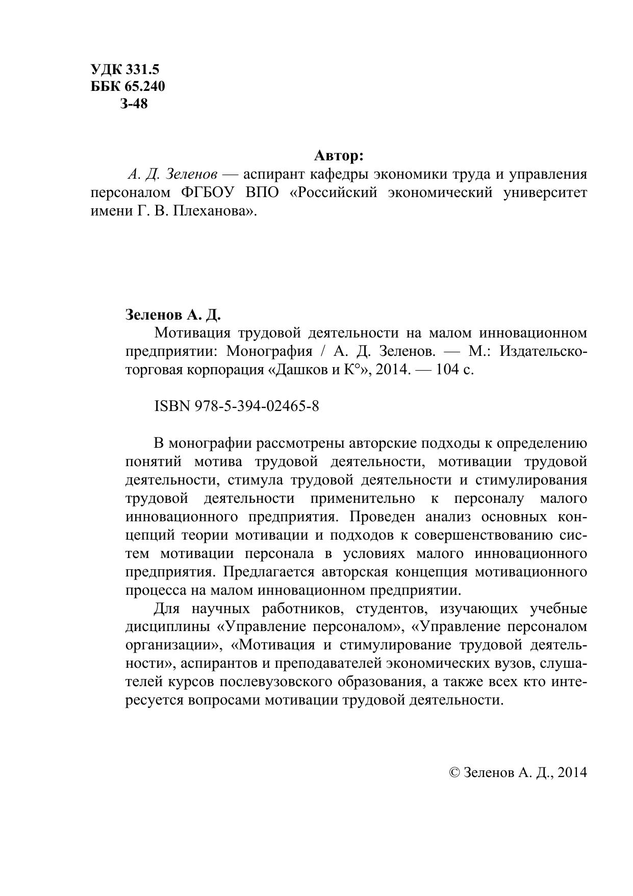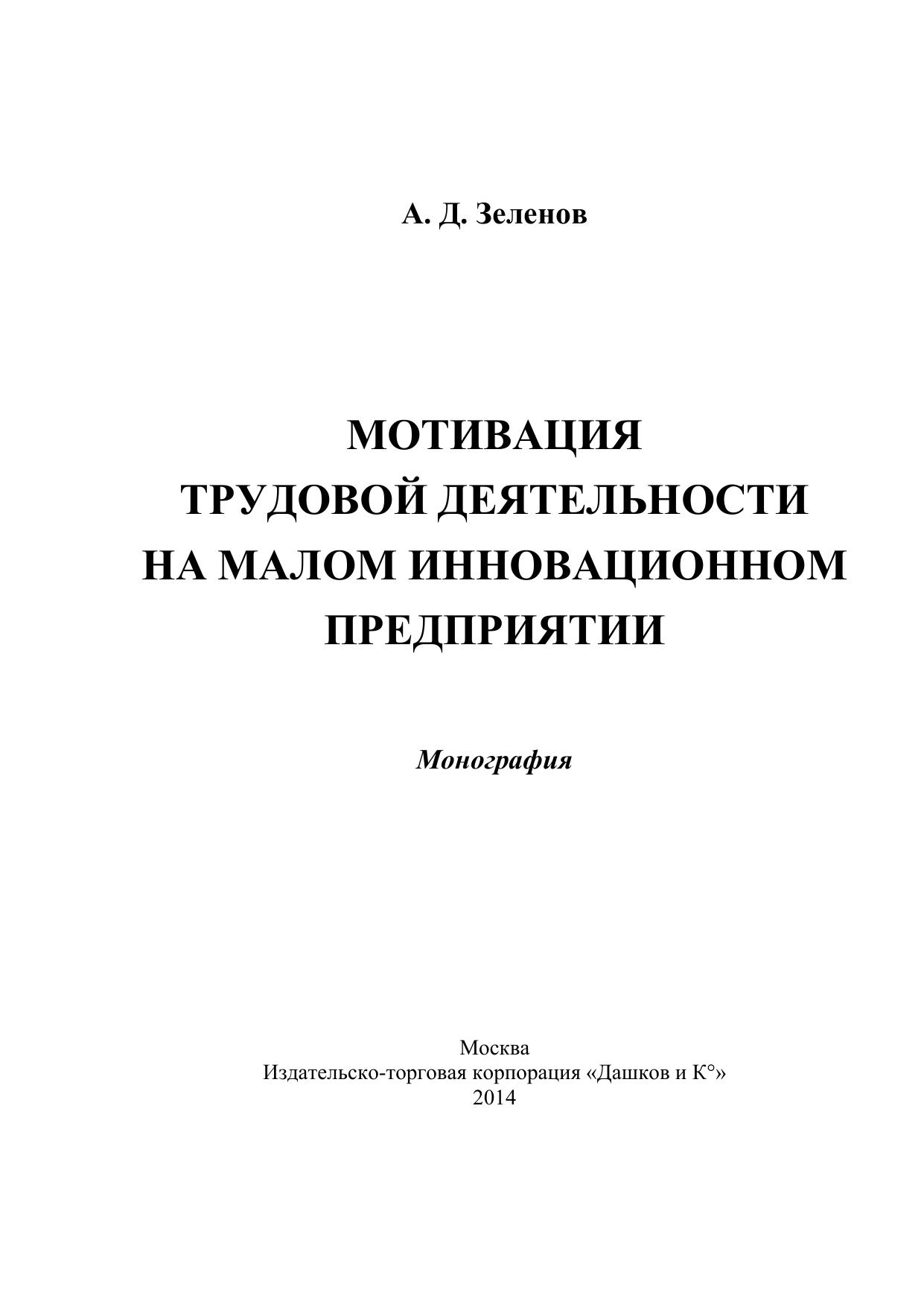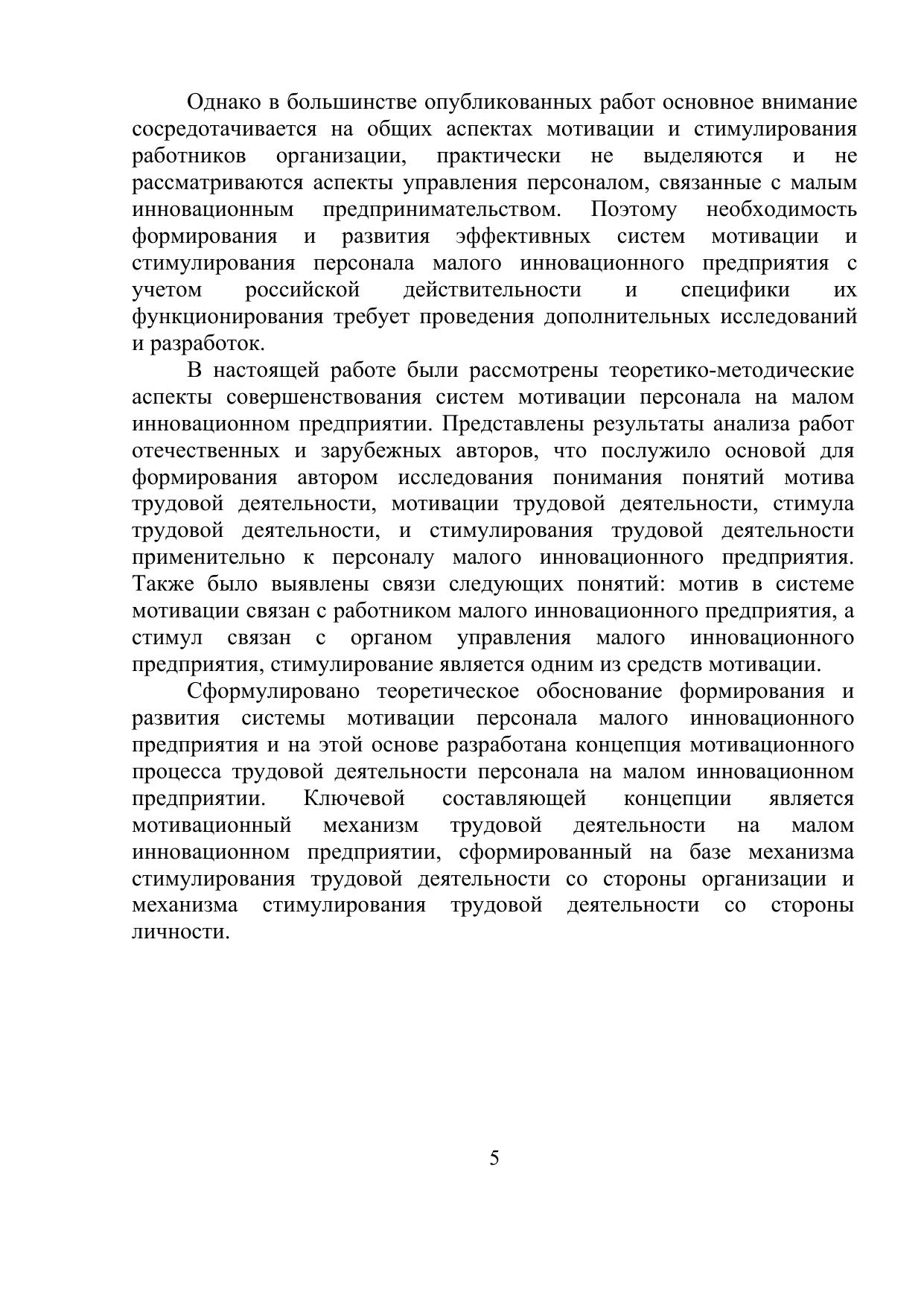 инновационного предприятия. Проведен анализ основных концепций теории мотивации и подходов к совершенствованию систем мотивации персонала в условиях малого инновационного предприятия. Предлагается авторская концепция мотивационного процесса на малом инновационном предприятии. Для научных работников, студентов, изучающих учебные дисциплины «Управление персоналом», «Управление персоналом организации», «Мотивация и стимулирование трудовой деятельности», аспирантов и преподавателей экономических вузов, слушателей курсов послевузовского образования, а также всех кто интересуется вопросами мотивации трудовой деятельности.
