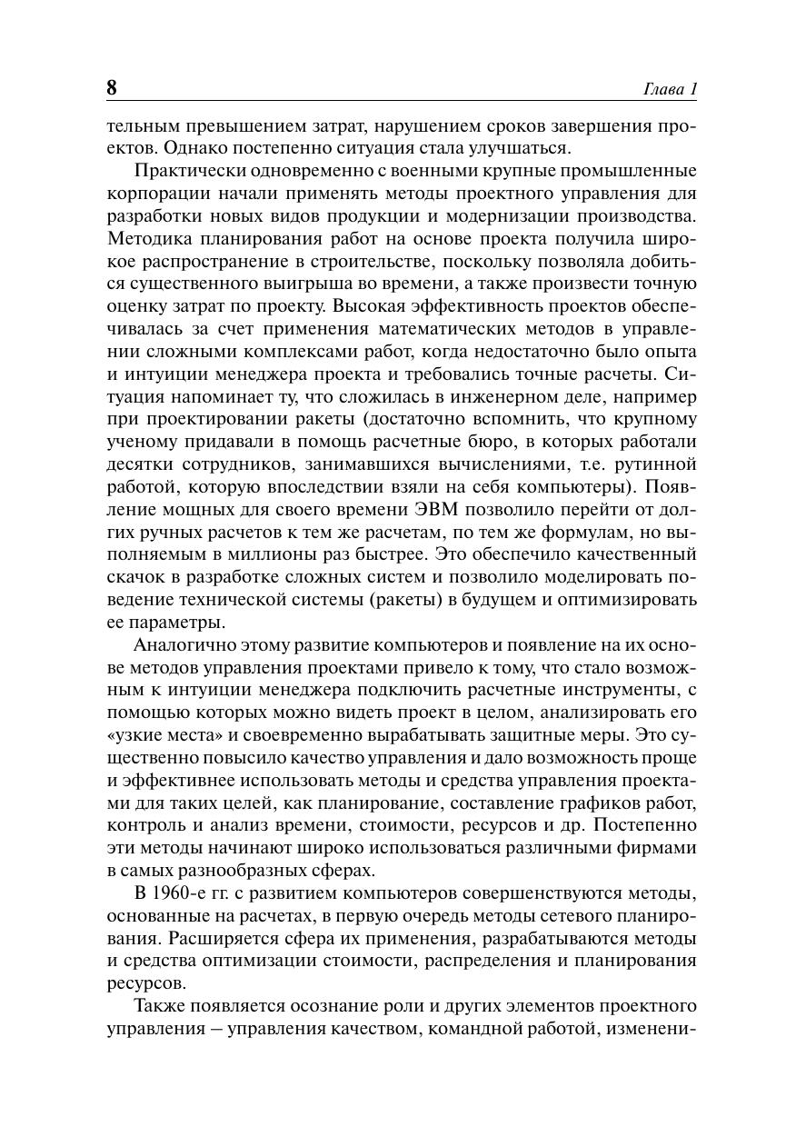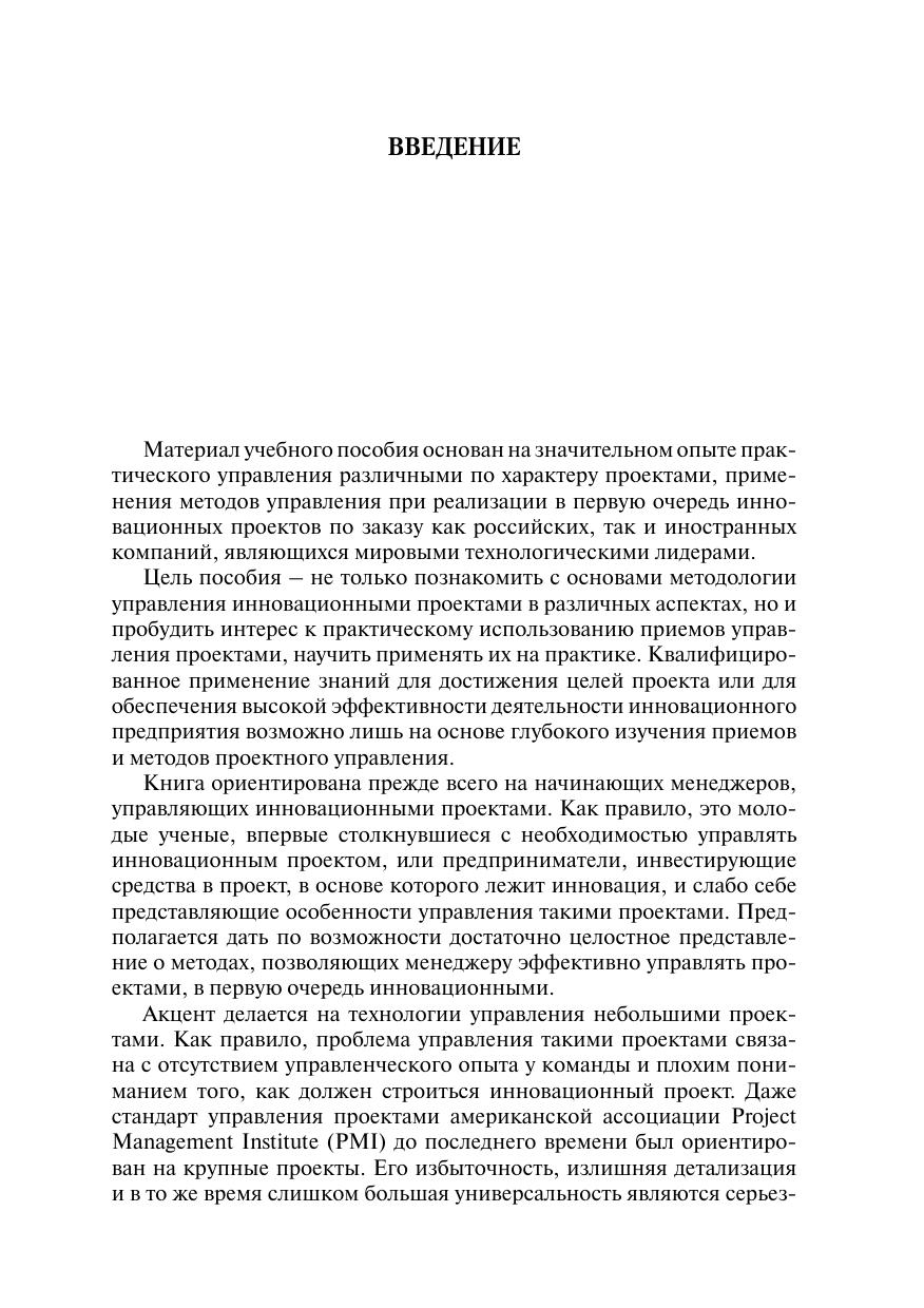 Серия Образовательные инновации. Учебное пособие посвящено актуальной теме – организации управления инновационными проектами. Значительное внимание уделено интеграционной компоненте управления проектами, придающей процессу управления проектом целостность и системность. Изложены подходы к мотивации персонала, подготовке обоснования и плана проекта, управлению рисками, организации мониторинга и завершения проекта. Рассмотрено использование проектного подхода – формирования программы в виде совокупности взаимосвязанных проектов различного типа – для реализации стратегических и оперативных целей компании. Анализируются проблемы, связанные с применением корпоративного стандарта управления проектами в качестве инструмента реализации целей проекта. Пособие не претендует на полноту и академическую точность формулировок – в ряде случаев сделаны сознательные отступления в сторону лучшего понимания предмета. Для специалистов, принимающих участие в управлении проектами, молодых ученых, сотрудников инновационных компаний, слушателей бизнес-школ, курсов повышения квалификации и переподготовки кадров, в том числе и студентов высших учебных заведений.