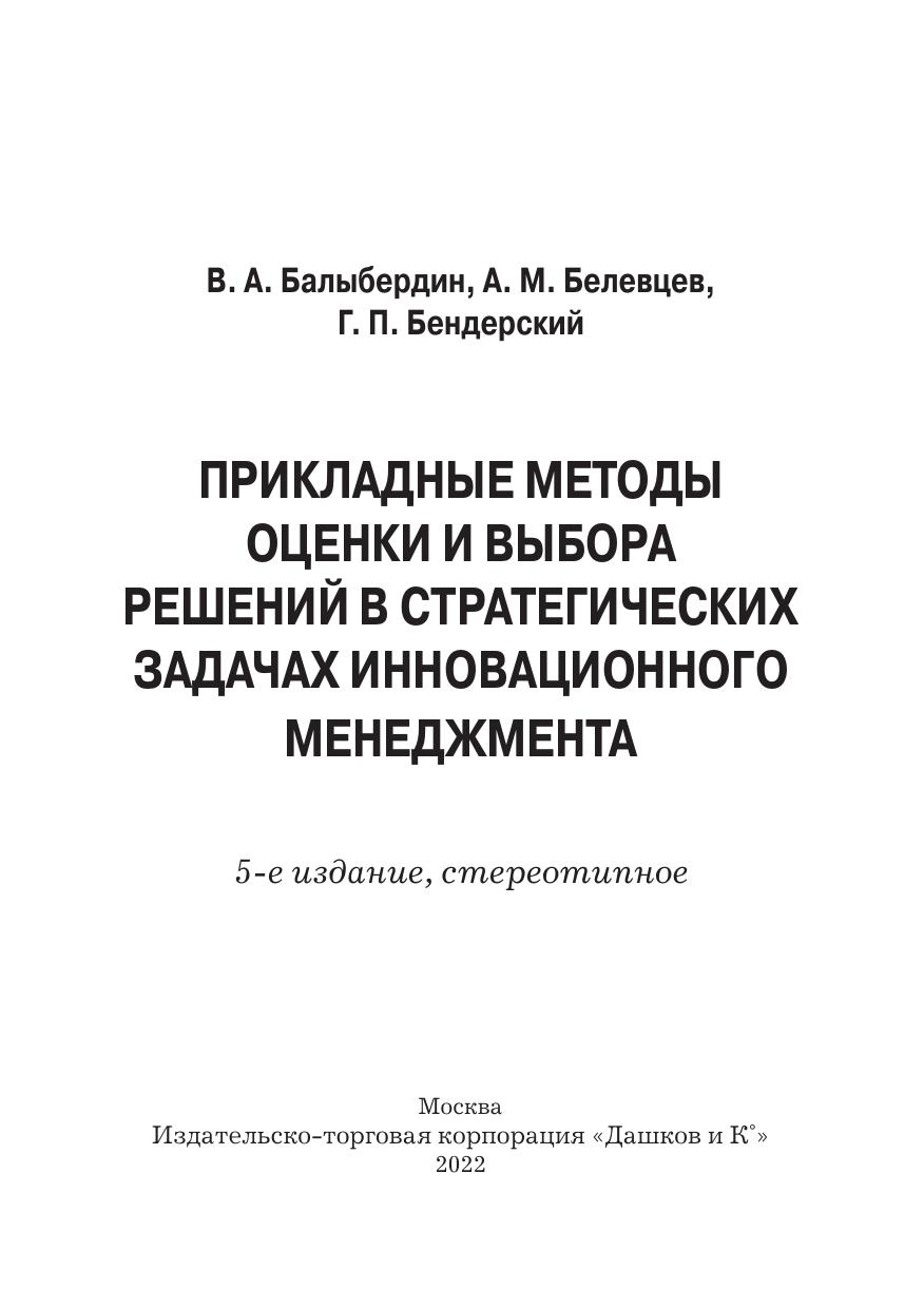 Прикладные методы оценки и выбора решений в стратегических задачах инновационного менеджмента