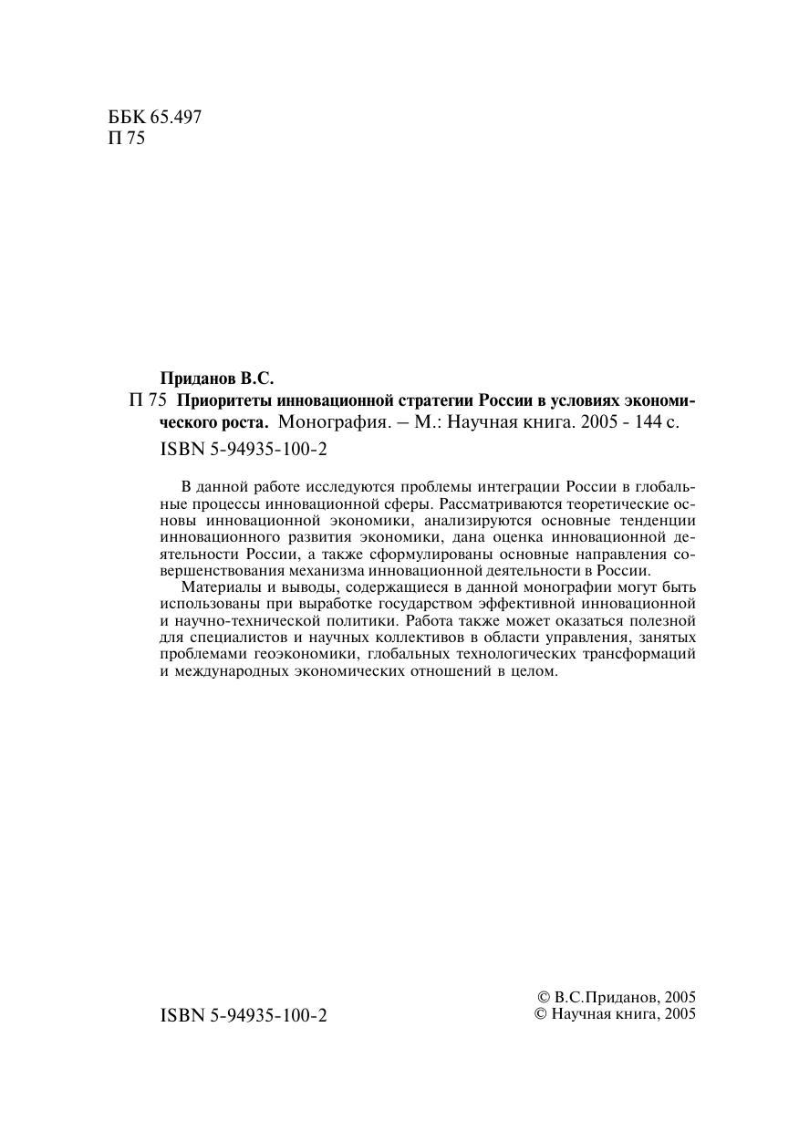 Приоритеты инновационной стратегии России в условиях экономического роста. Монография