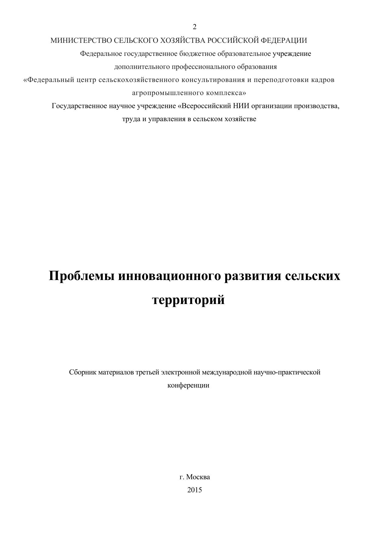 Проблемы инновационного развития сельских территорий: Сборник материалов третьей электронной международной научно-практической конференции
