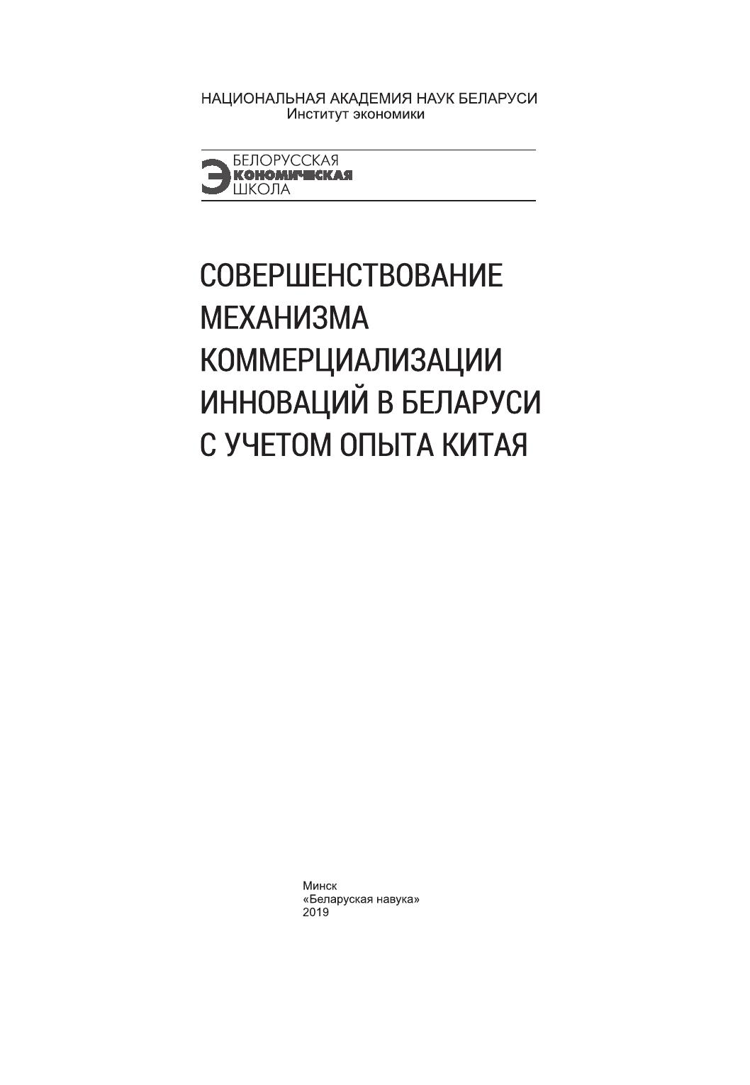 Совершенствование механизма коммерциализации инноваций в Беларуси с учетом опыта Китая