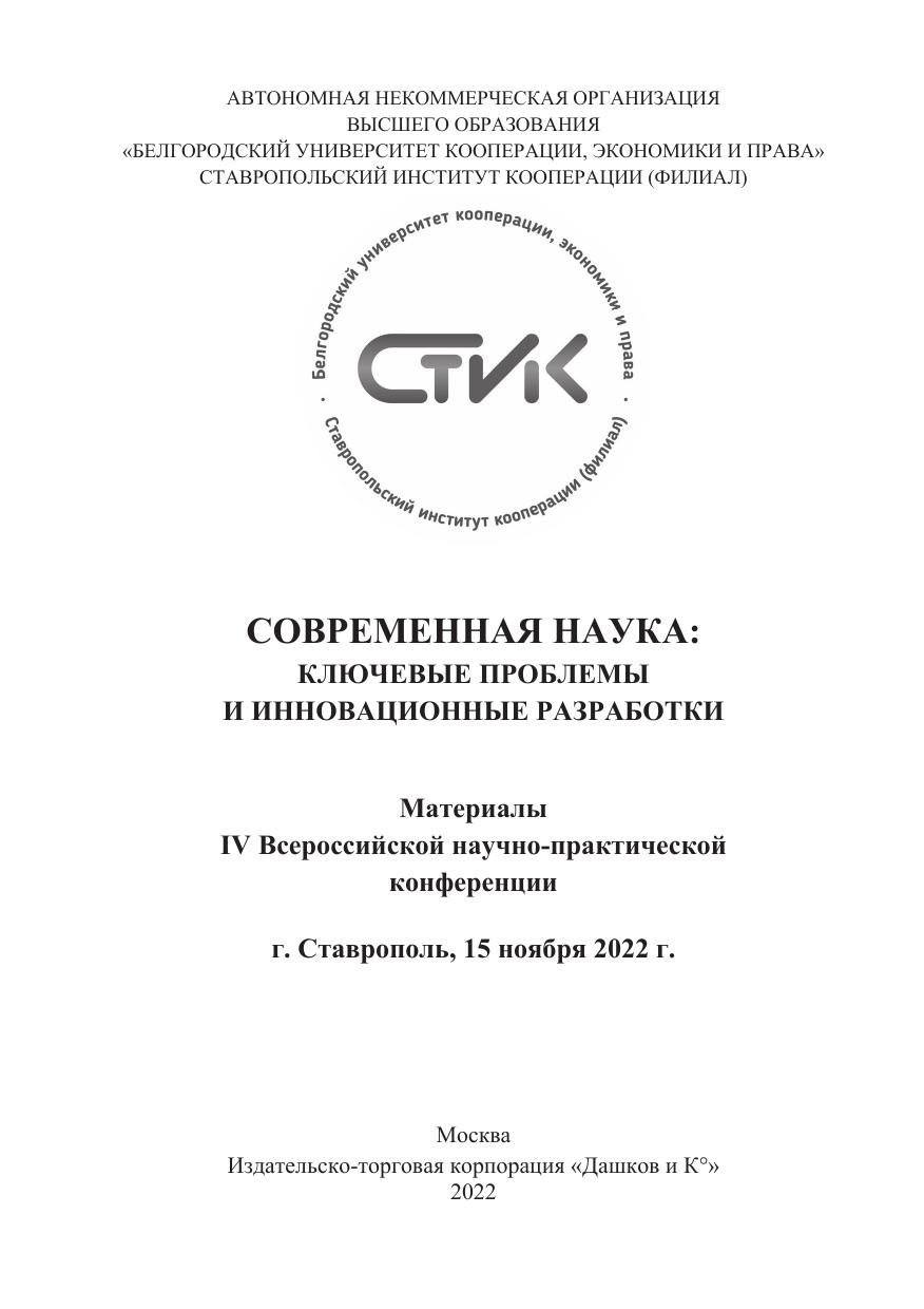 Современная наука: ключевые проблемы и инновационные разработки: материалы IV Всероссийской научной конференции, г.Ставрополь, 15 ноября 2022г.