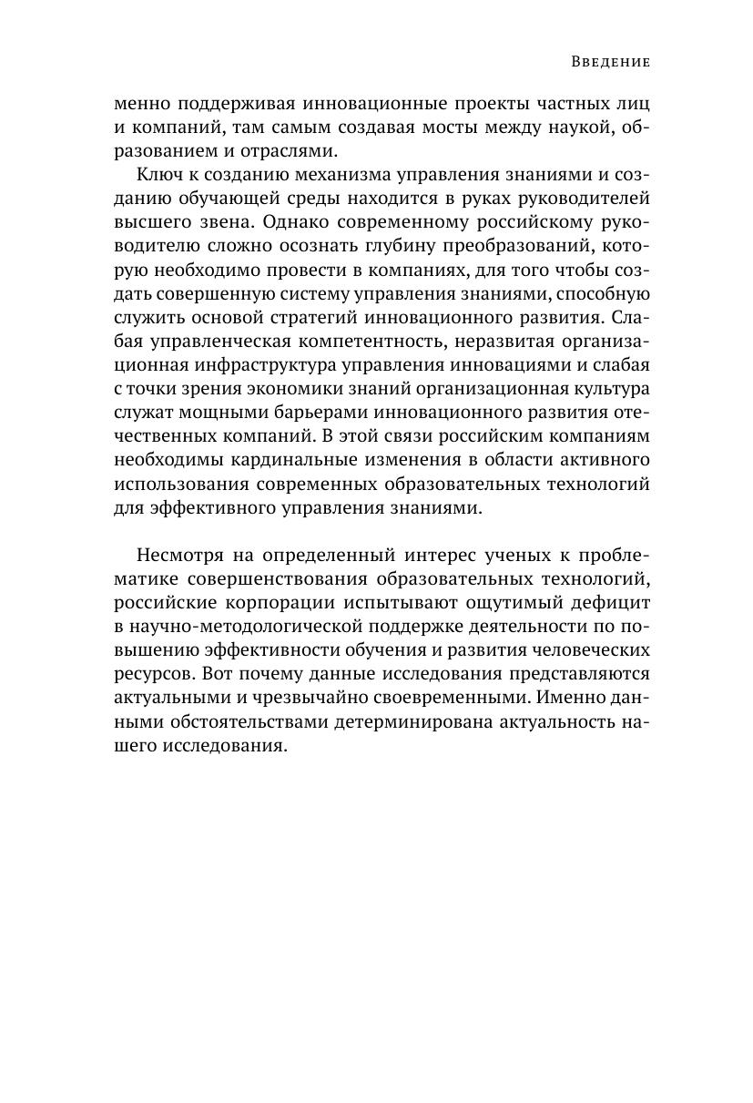 Серия Россия. Вызовы модернизации. Социальная политика. В книге рассматриваются теоретические подходы к созданию и активному использованию возможностей образовательной среды как ключевого условия эффективного управления знаниями и инновациями. Особое внимание уделено исследованию современных практик и детерминант инновационного развития зарубежных и отечественных компаний. Для преподавателей, аспирантов, студентов факультетов управления различных вузов и слушателей МВА бизнес-школ. Книга будет интересна научным работникам, топ-менеджерам, специалистам в разных сферах управления: экономики, производства, социологии, социальной психологии и организационного поведения.