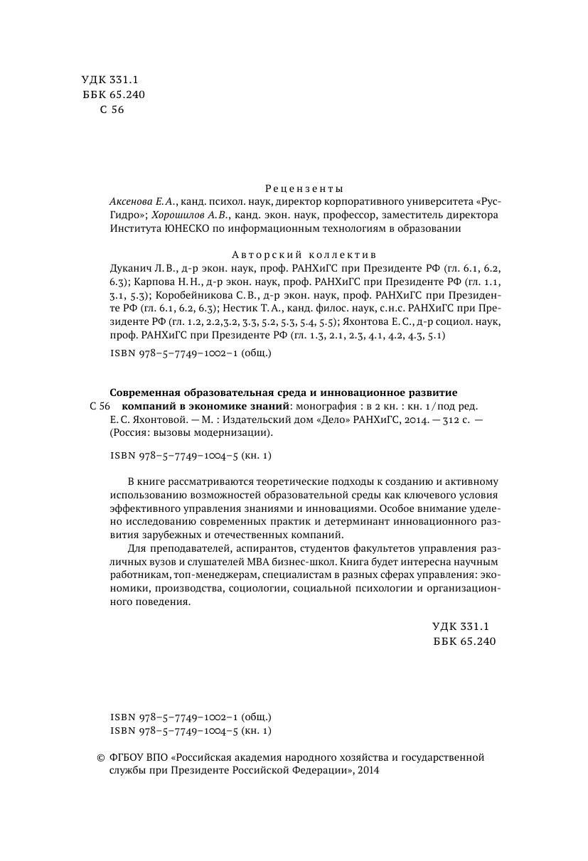 Современная образовательная среда и инновационное развитие компаний в экономике знаний: в 2 кн.: кн. 1