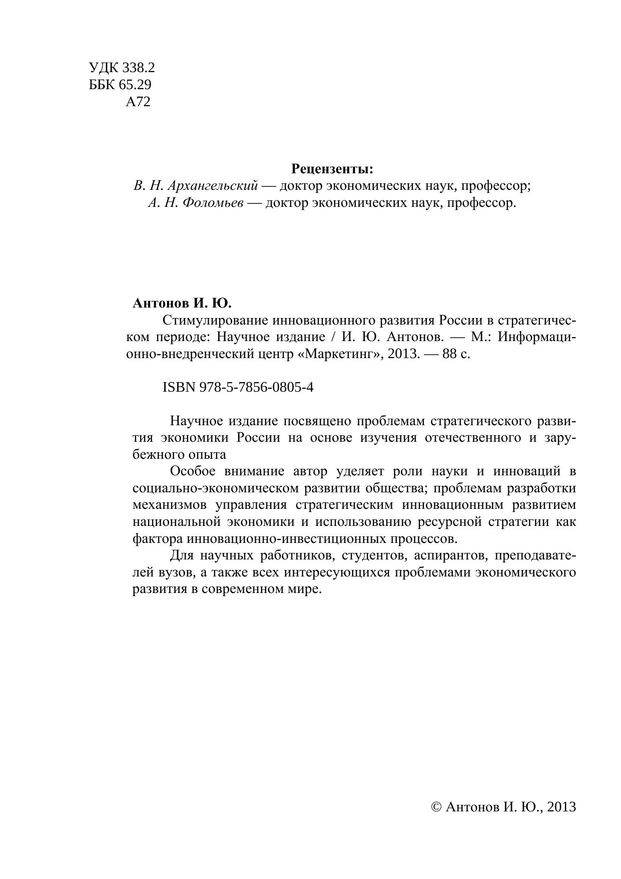 Стимулирование инновационного развития России в стратегическом периоде: Монография