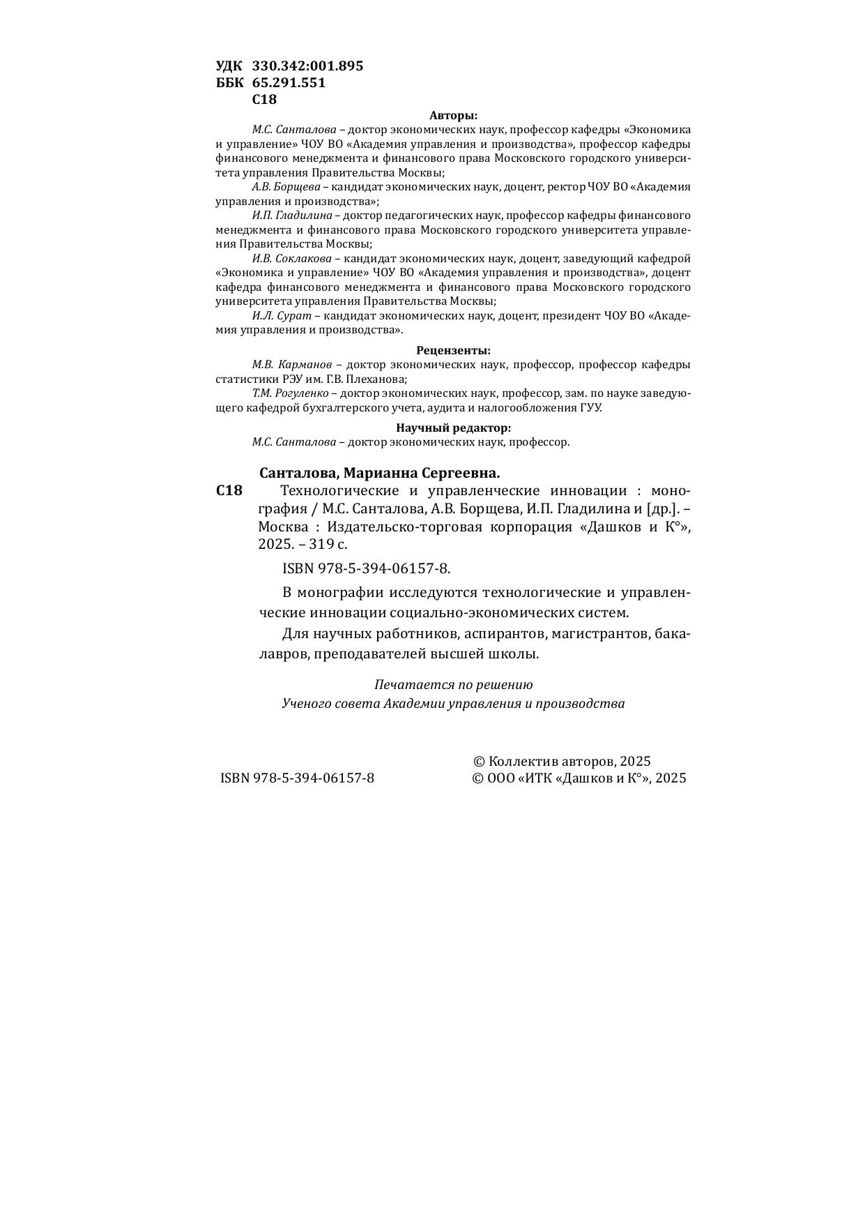В монографии исследуются технологические и управленческие инновации социально-экономических систем.
