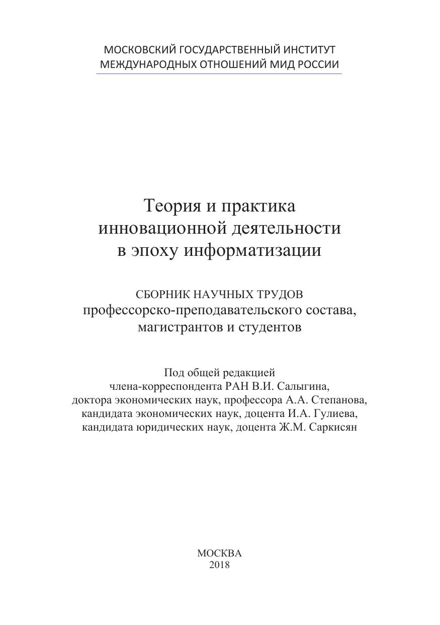 Теория и практика инновационной деятельности в эпоху информатизации