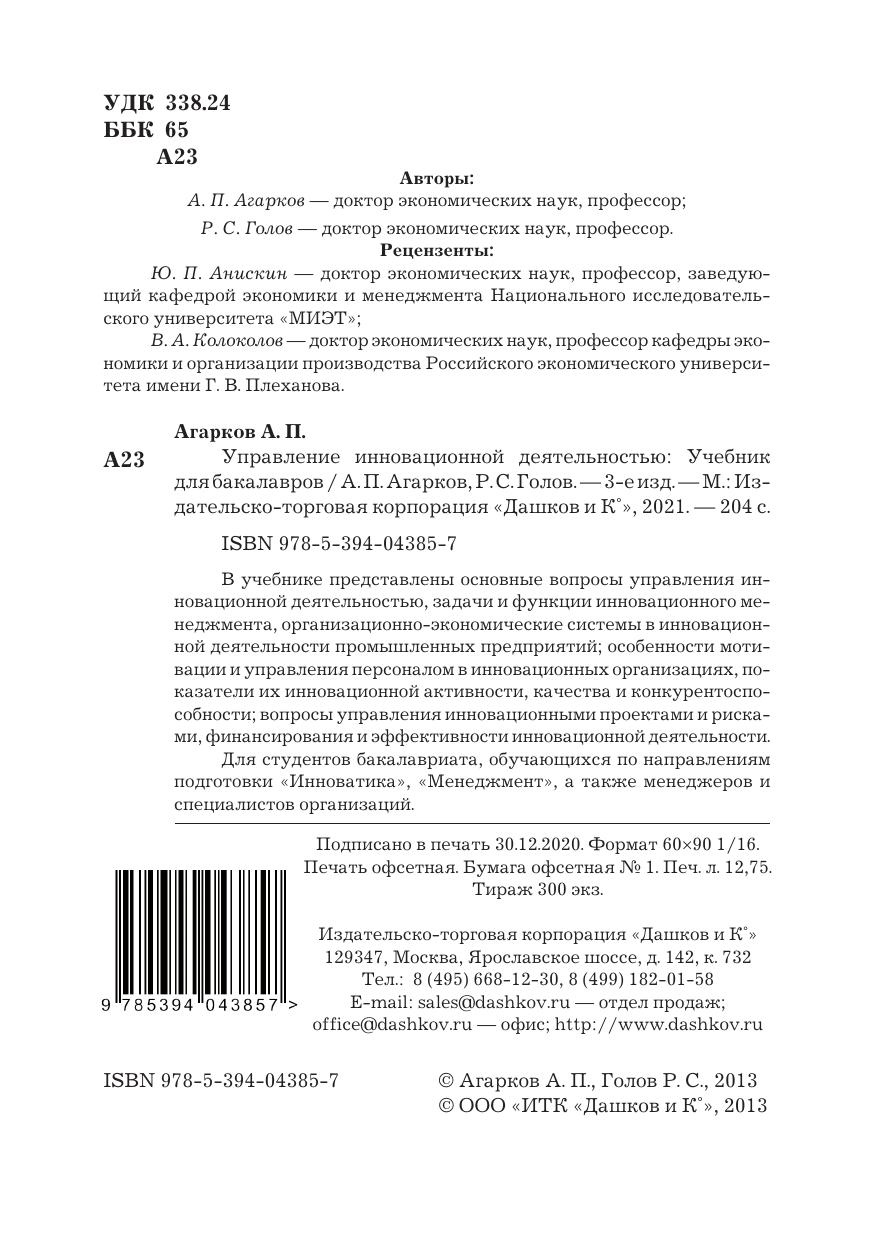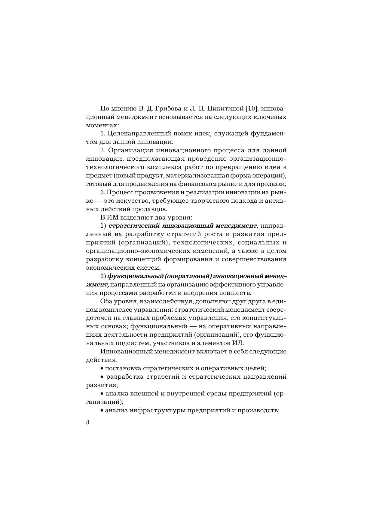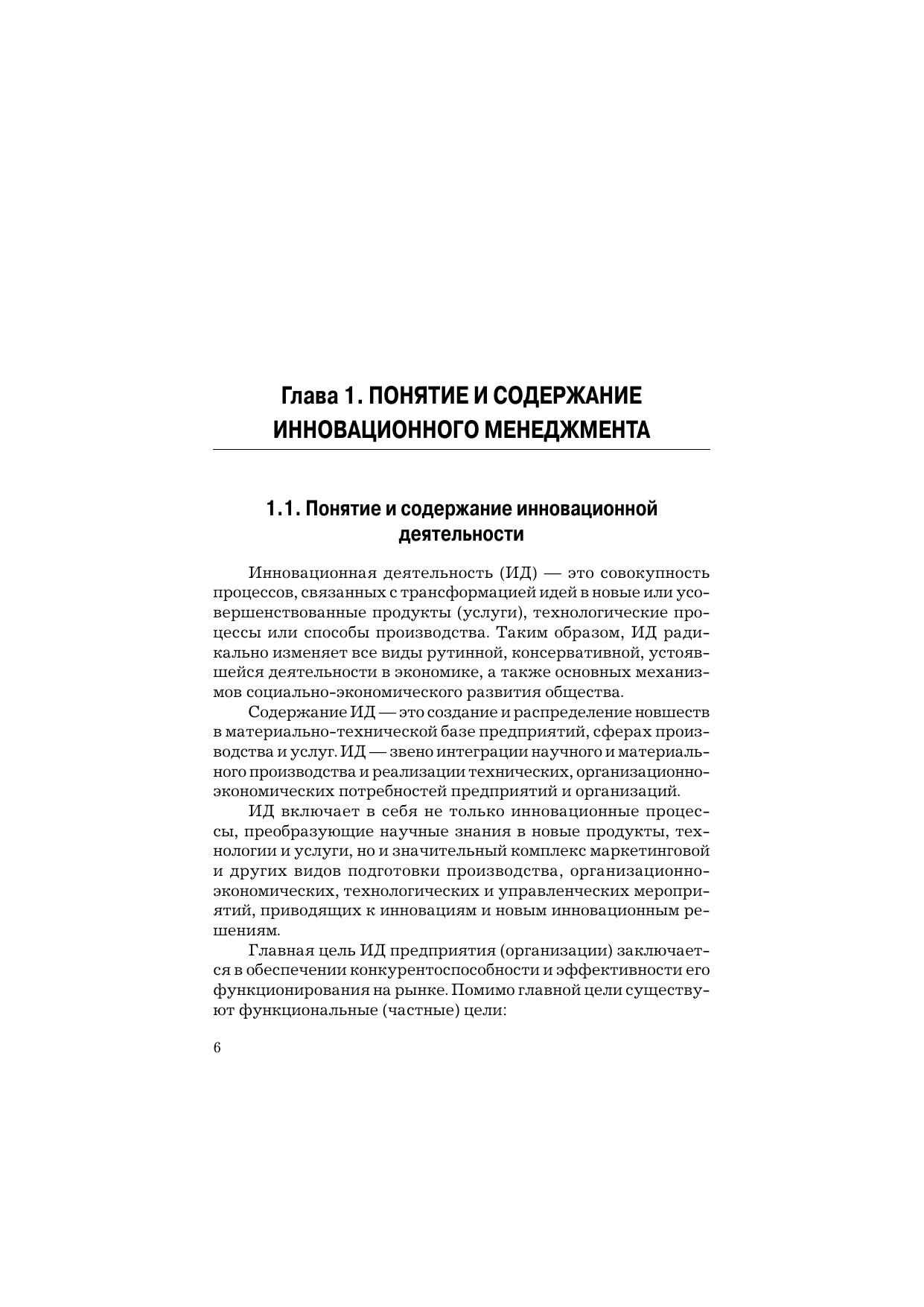 В учебнике в соответствии с ФГОС третьего поколения представлены основные вопросы управления инновационной деятельностью, задачи и функции инновационного менеджмента, организационно-экономические системы в инновационной деятельности промышленных предприятий, особенности мотивации и управления персоналом в инновационных организациях, показатели их инновационной активности, качества и конкурентоспособности, вопросы управления инновационными проектами и рисками, финансирования и эффективности инновационной деятельности. Представлены имеющие практическую значимость новые виды инновационного предпринимательства, методические положения по бизнес-планированию, инновационные разработки в области технического перевооружения и организации промышленного производства. Для студентов бакалавриата, обучающихся по направлениям подготовки "Инноватика", "Менеджмент", а также менеджеров и специалистов организации. Гриф