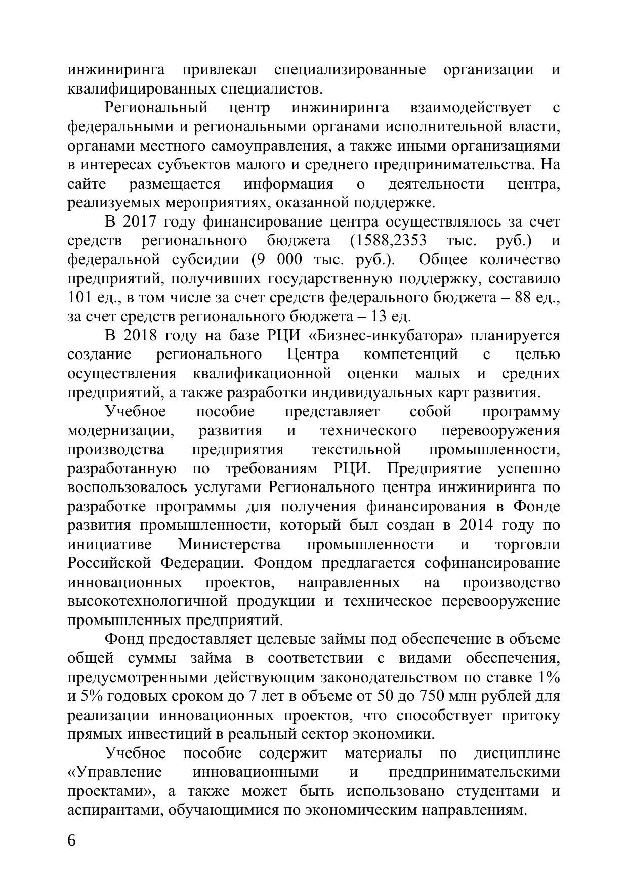В учебном пособии приводятся научно-практические материалы, представленные в форме кейса на основе материалов инновационного проекта предприятия реального бизнеса. Издание предназначено для студентов, обучающихся по направлениям 38.03.01 «Экономика», 38.03.02 «Менеджмент».