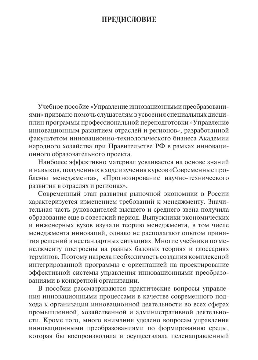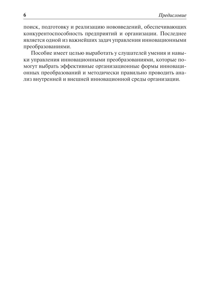 Серия Образовательные инновации. В пособии рассматриваются практические вопросы управления инновационными процессами в промышленной, хозяйственной и административной сферах, вопросы формирования среды, которая бы воспроизводила и осуществляла целенаправленный поиск, подготовку и реализацию нововведений, обеспечивающих конкурентоспособность предприятий и организаций. Пособие может быть использовано при подготовке управленческих кадров различного уровня (ВО, МВА), при профессиональной переподготовке и повышении квалификации.