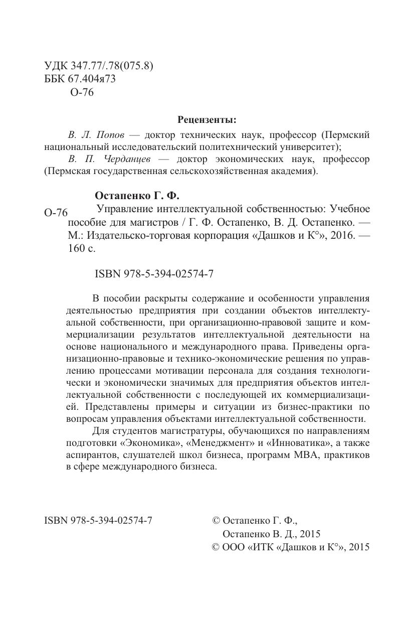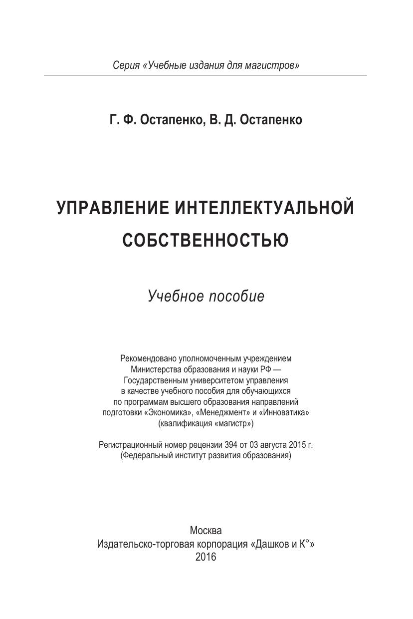 Управление интеллектуальной собственностью: Учебное пособие для магистров