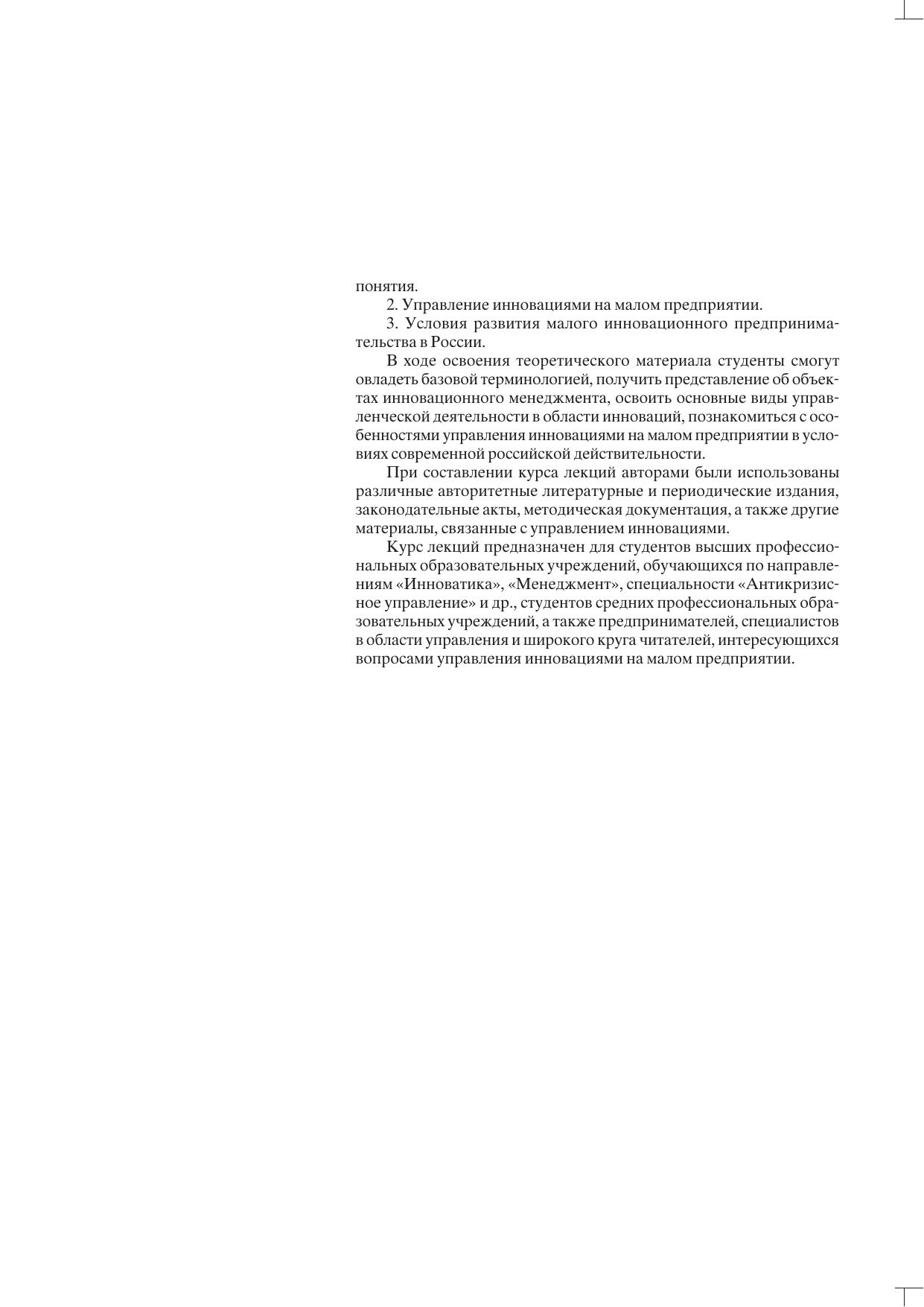 Управление малым бизнесом на основе инноваций: курс лекций: учеб. пособие