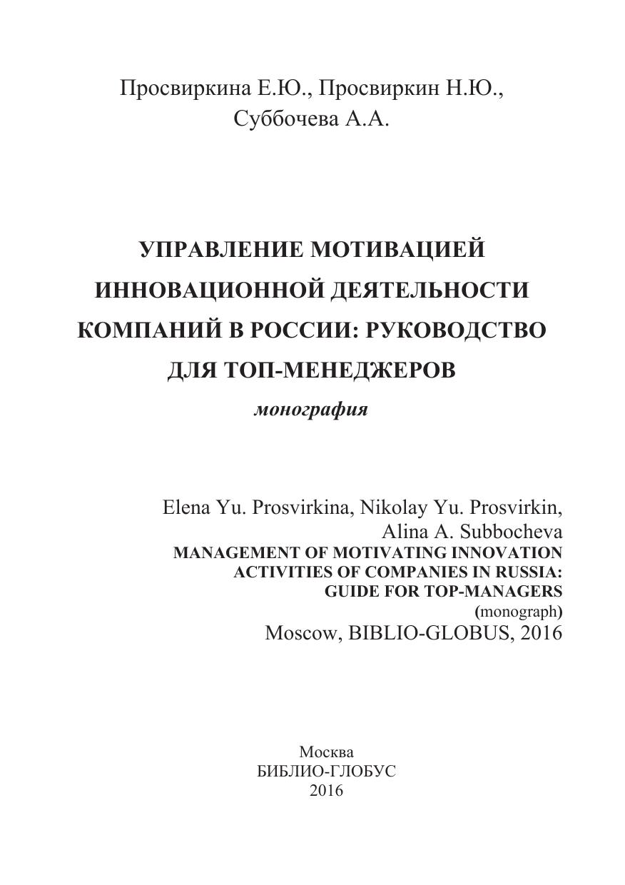Управление мотивацией инновационной деятельности компаний в России: руководство для топ-менеджеров