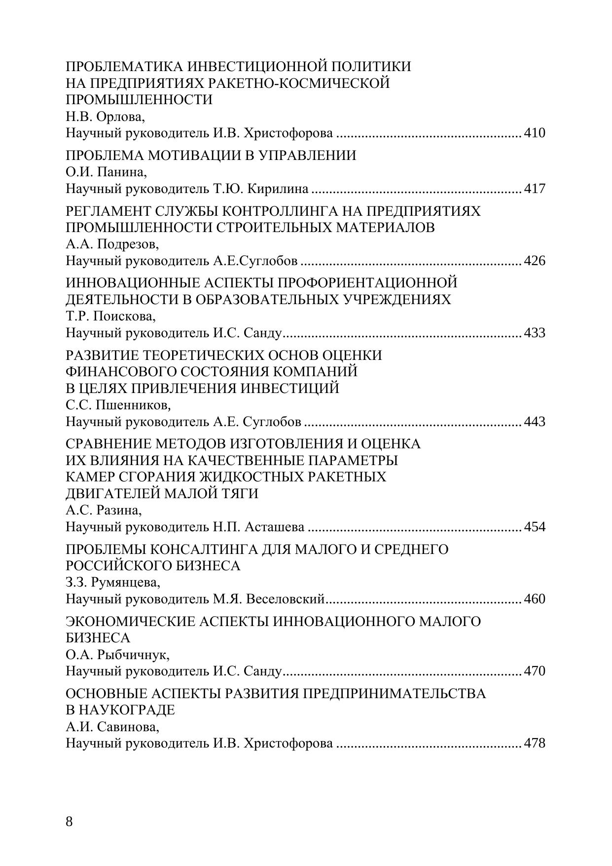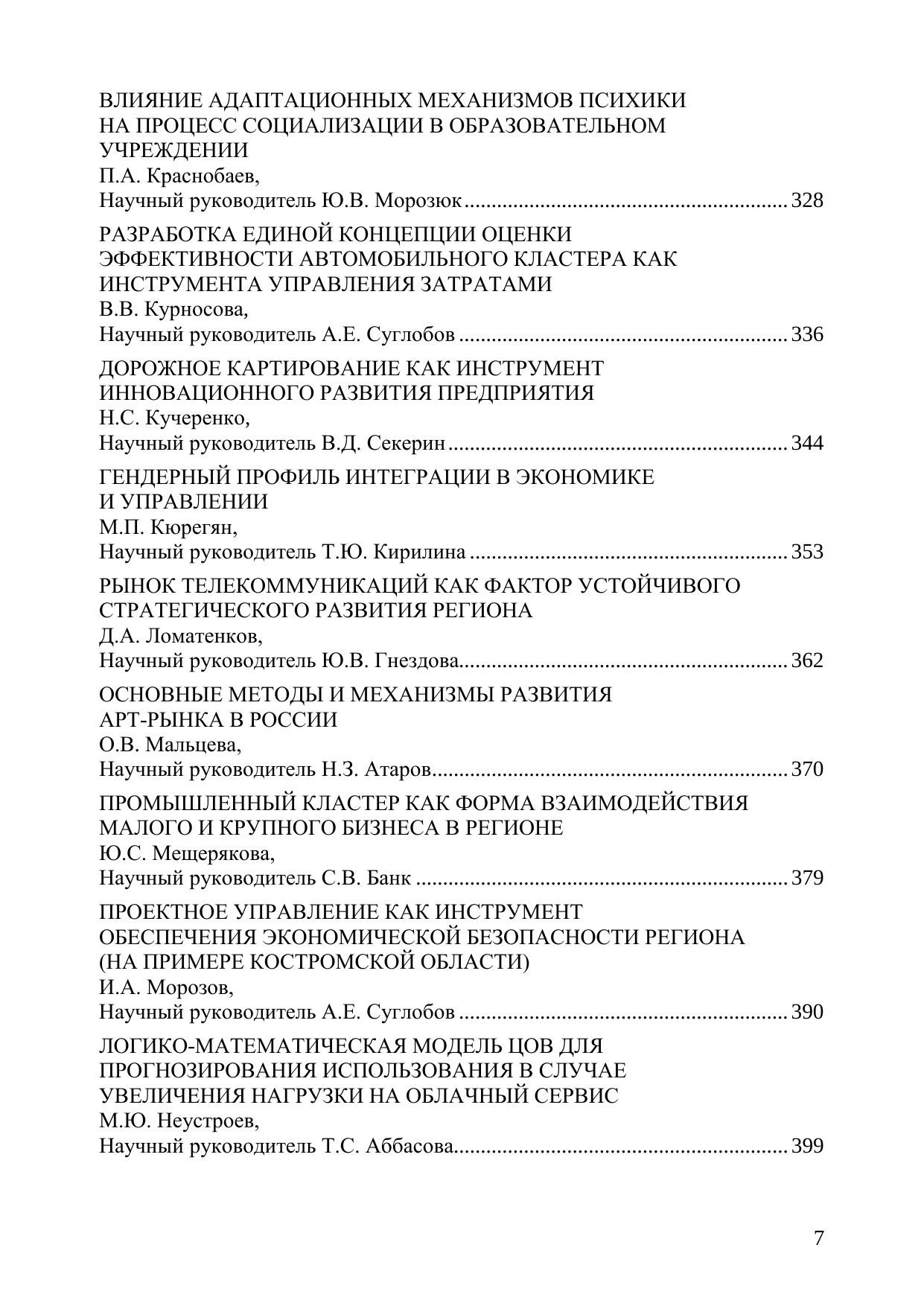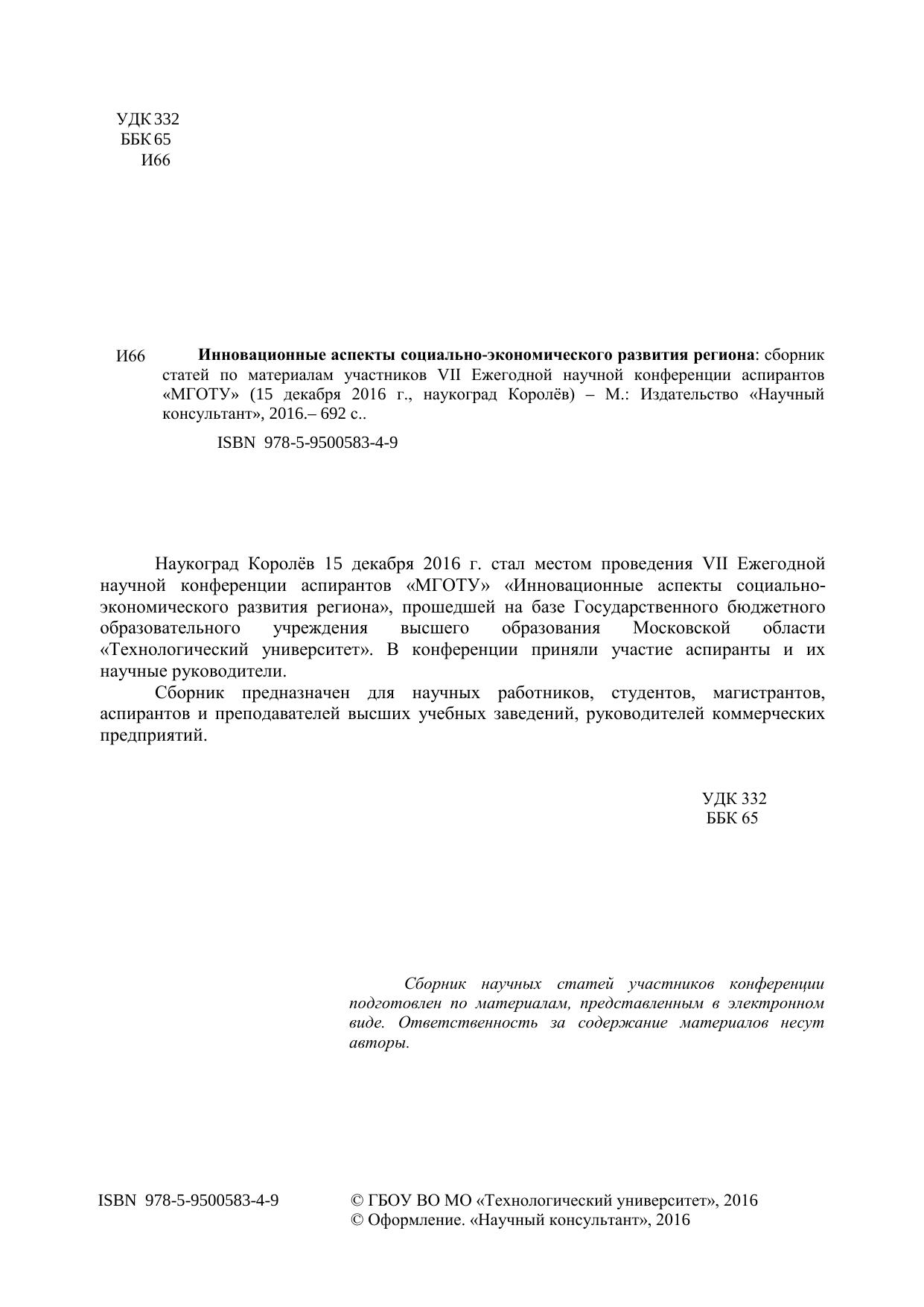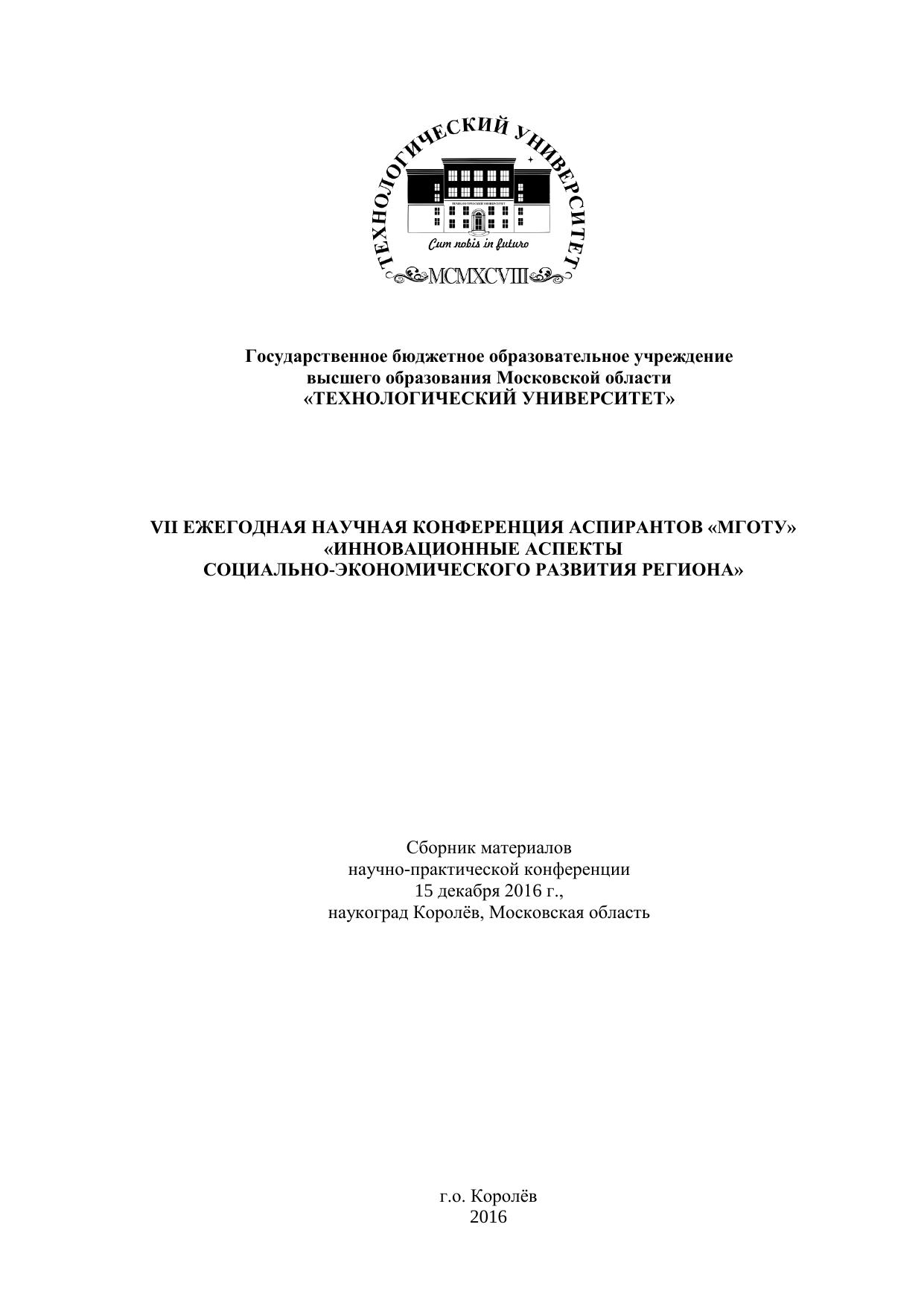 VII Ежегодная научная конференция аспирантов «МГОТУ» Инновационные аспекты социально-экономического развития региона