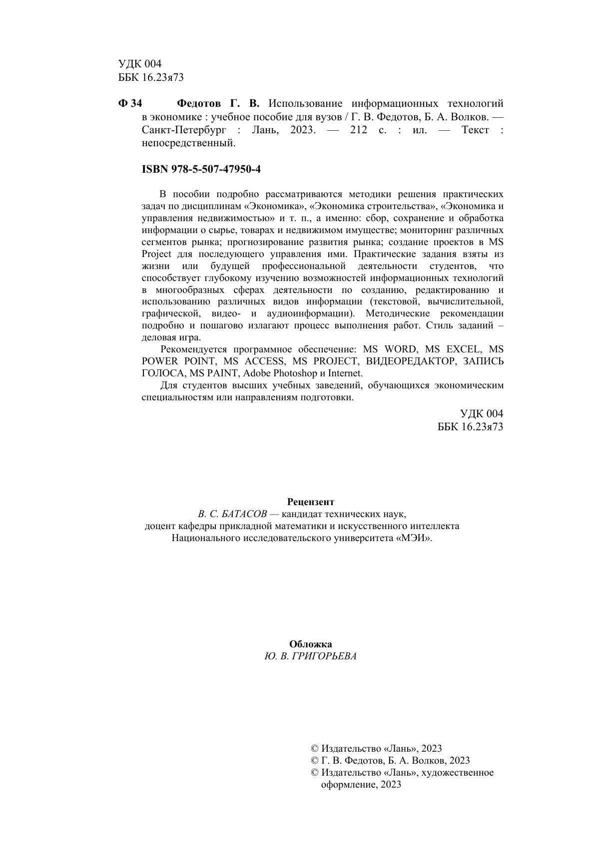 В пособии подробно рассматриваются методики решения практических задач по дисциплинам «Экономика», «Экономика строительства», «Экономика и управления недвижимостью» и т. п., а именно: сбор, сохранение и обработка информации о сырье, товарах и недвижимом имуществе, мониторинг различных сегментов рынка, прогнозирование развития рынка, создание проектов в MS Project для последующего управления ими. Практические задания взяты из жизни или будущей профессиональной деятельности студентов, что способствует глубокому изучению возможностей информационных технологий в многообразных сферах деятельности по созданию, редактированию и использованию различных видов информации (текстовой, вычислительной, графической, видео- и аудиоинформации). Методические рекомендации подробно и пошагово излагают процесс выполнения работ. Стиль заданий – деловая игра. Рекомендуется программное обеспечение: MS WORD, MS EXCEL, MS POWER POINT, MS ACCESS, MS PROJECT, ВИДЕОРЕДАКТОР, ЗАПИСЬ ГОЛОСА, MS PAINT, Adobe Photoshop и Internet. Для студентов высших учебных заведений, обучающихся экономическим специальностям или направлениям подготовки.