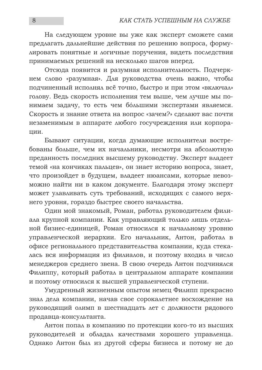 Рекомендации автора основаны на его собственном опыте работы в многоуровневых иерархических структурах – государственных и корпоративных. Повествование содержит многочисленные примеры успеха и неудач реальных людей, чьи взлеты и падения состоялись на глазах у автора.