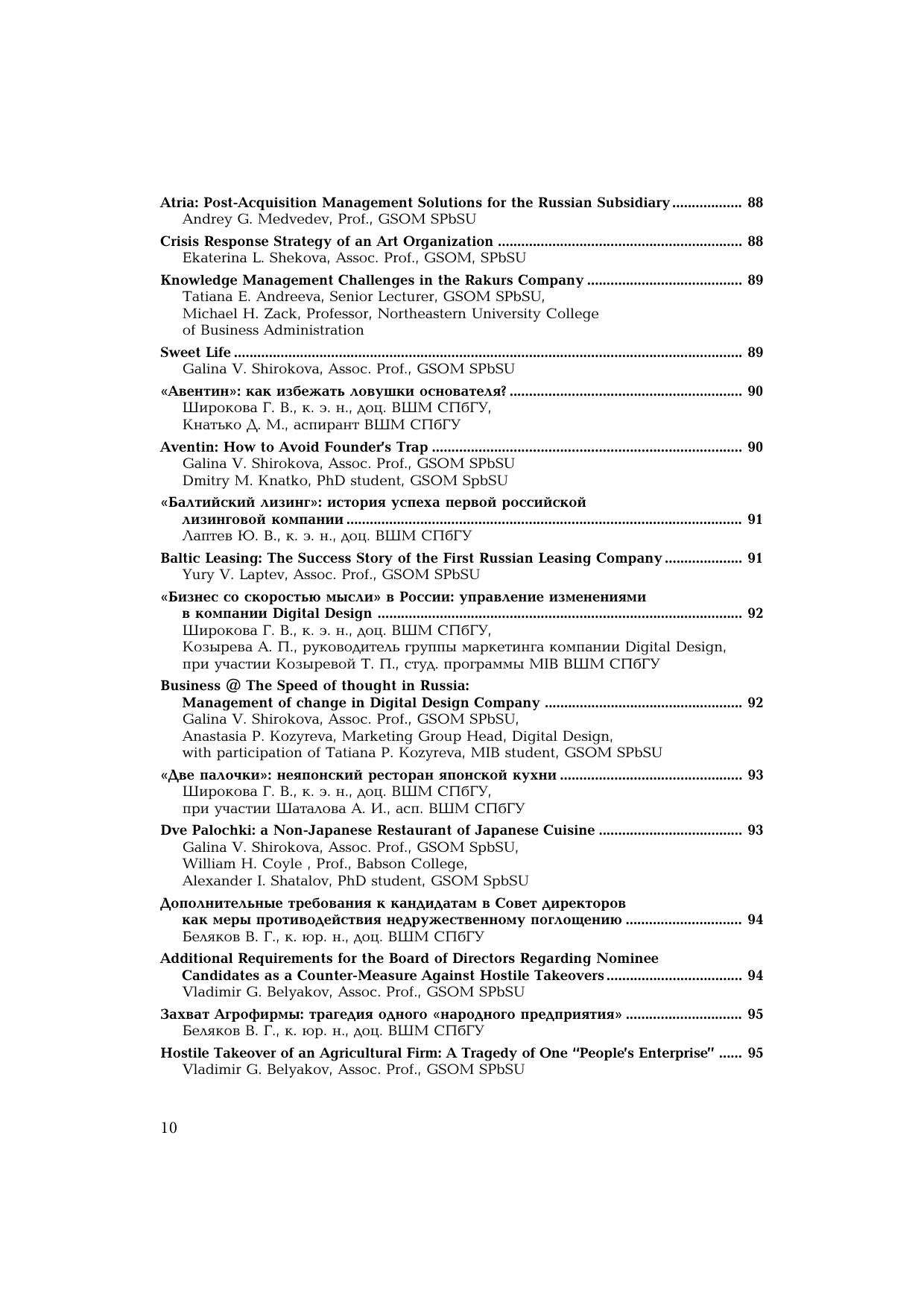 Кейсы ВШМ СПбГУ: аннотированный указатель