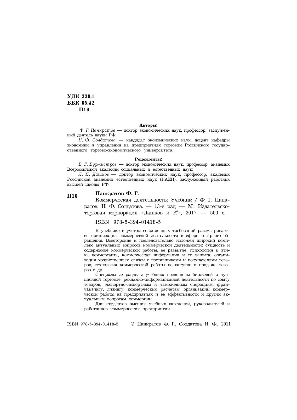 В учебнике с учетом современных требований рассматривается организация коммерческой деятельности в сфере товарного обращения. Всесторонне и последовательно изложен широкий комплекс актуальных вопросов коммерческой деятельности: сущность и содержание коммерческой работы, ее развитие, психология и этика коммерсанта, коммерческая информация и ее защита, организация хозяйственных связей с поставщиками и покупателями товаров, технология коммерческой работы по закупке и продаже товаров и др. Специальные разделы учебника посвящены биржевой и аукционной торговле, рекламно-информационной деятельности по сбыту товаров, экспортно-импортным и таможенным операциям, франчайзингу, лизингу, коммерческим расчетам, организации коммерческой работы на предприятиях и ее эффективности и другим актуальным вопросам коммерции. Для студентов высших учебных заведений, руководителей и работников коммерческих предприятий.
