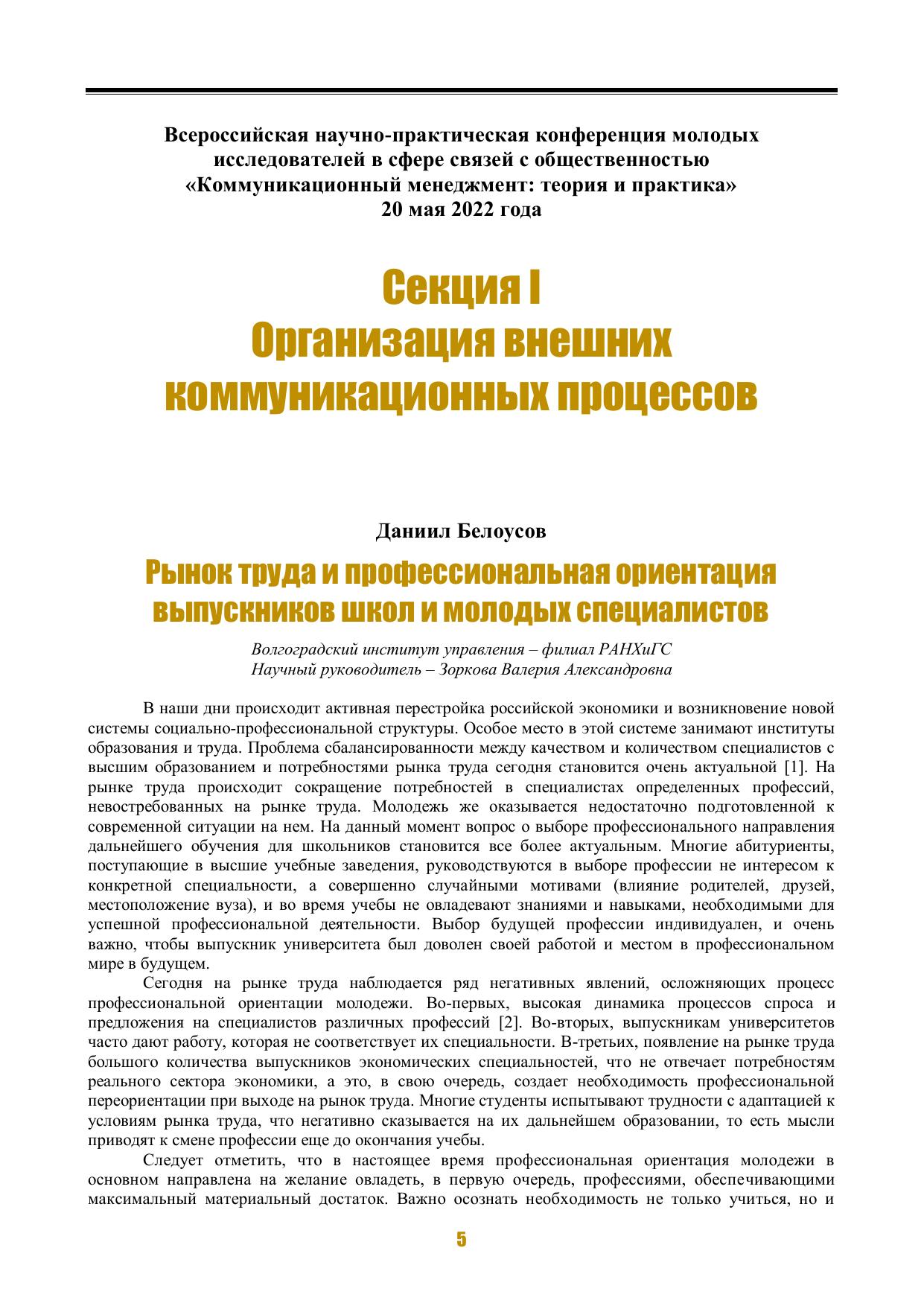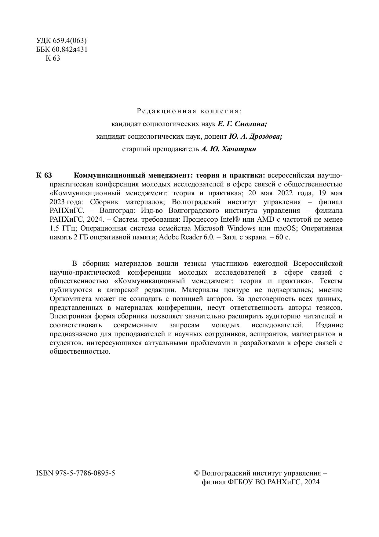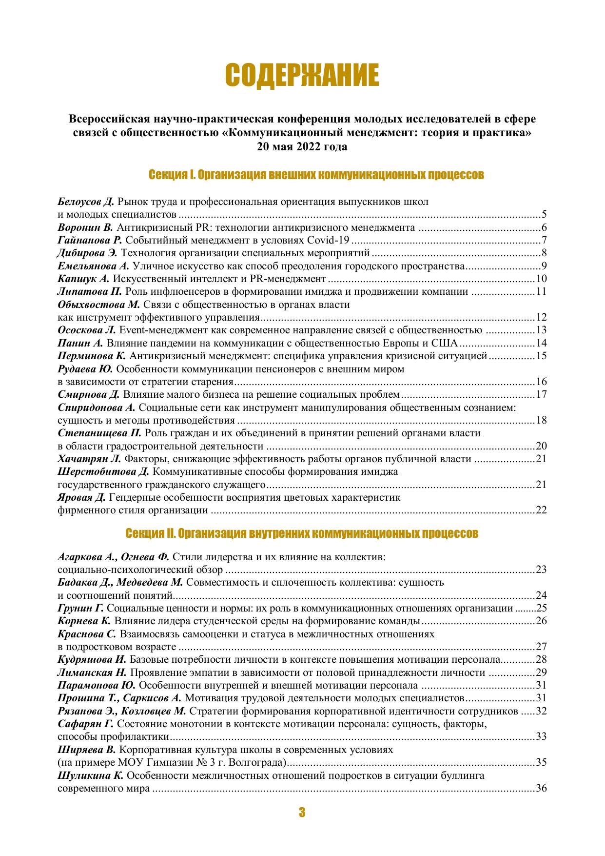 Коммуникационный менеджмент: теория и практика практика: всероссийская научно-практическая конференция молодых исследователей в сфере связей с общественностью «Коммуникационный менеджмент: теория и практика»; 20 мая 2022 года, 19 мая 2023 года: Сборник материалов