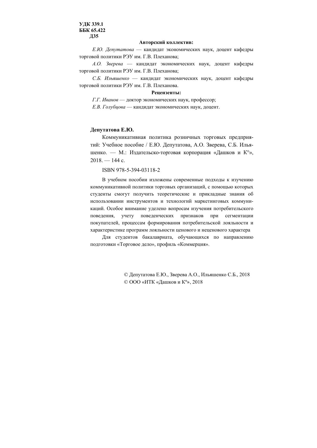 Авторы: Депутатова Е.Ю., Зверева А.О., Ильяшенко С.Б.