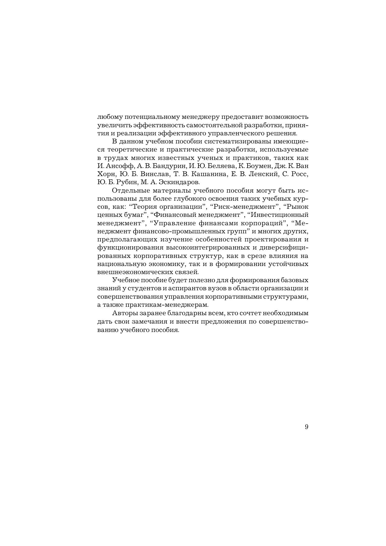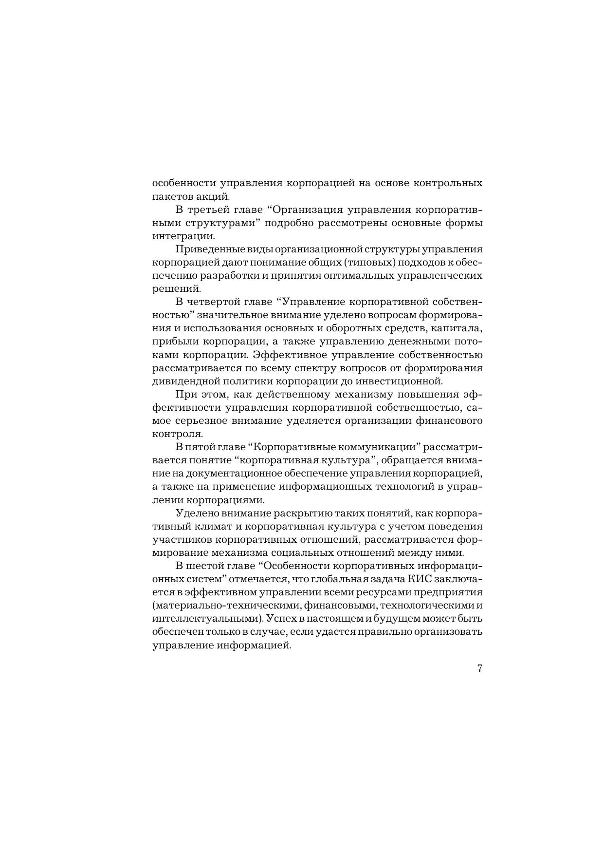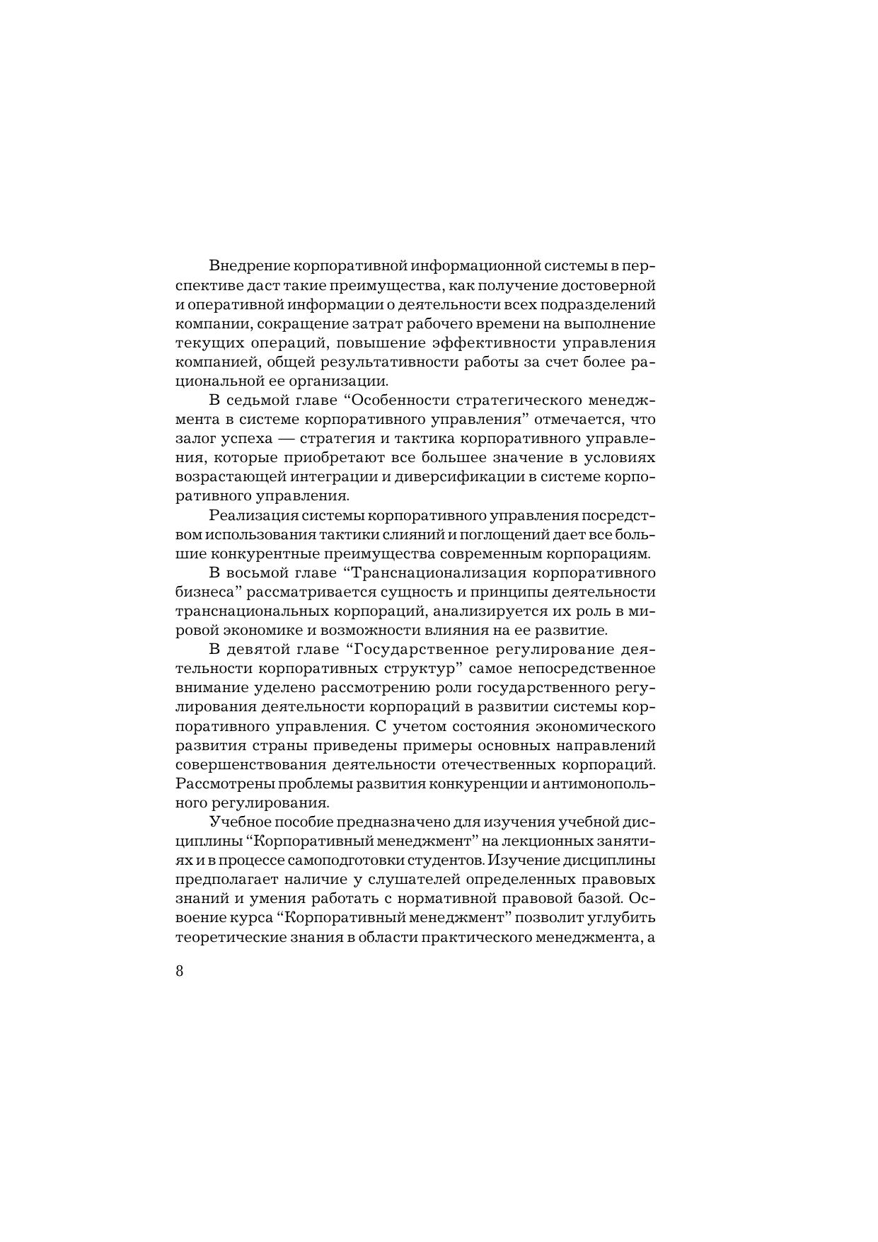 В учебном пособии рассмотрены основные понятия теории корпоративного управления, позволяющие раскрыть принципы организации деятельности реально функционирующих корпоративных структур. В нем нашли отражение проблемы организационных преобразований в крупных корпоративных структурах. Авторами предложены направления анализа, позволяющие выбрать оптимальную стратегию и тактику слияний и поглощений, возможных в ходе развития или преобразования бизнес-процессов. Кроме того, отдельно рассмотрены вопросы государственнгого регулирования деятельности корпораций, роль и место корпоративных структур в мировой экономической системе. Для студентов и аспирантов вузов, а также практиков-менеджеров. Гриф.