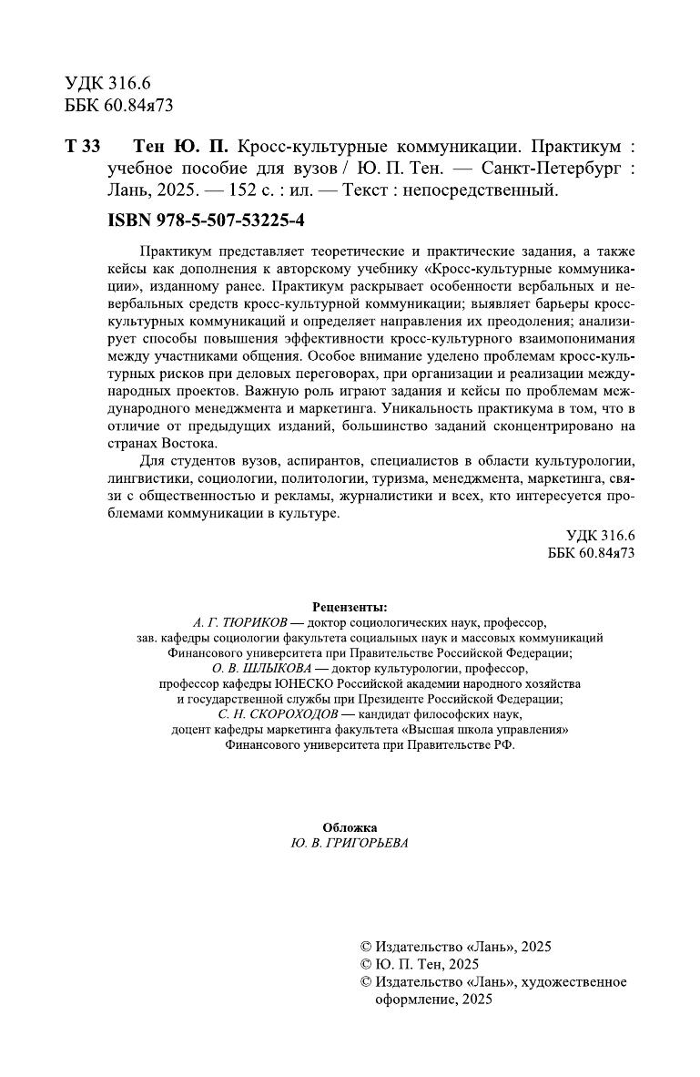 Практикум представляет теоретические и практические задания, а также кейсы как дополнения к авторскому учебнику «Кросс-культурные коммуникации», изданному ранее. Практикум раскрывает особенности вербальных и невербальных средств кросс-культурной коммуникации, выявляет барьеры кросс-культурных коммуникаций и определяет направления их преодоления, анализирует способы повышения эффективности кросс-культурного взаимопонимания между участниками общения. Особое внимание уделено проблемам кросс-культурных рисков при деловых переговорах, при организации и реализации международных проектов. Важную роль играют задания и кейсы по проблемам международного менеджмента и маркетинга. Уникальность практикума в том, что в отличие от предыдущих изданий, большинство заданий сконцентрировано на странах Востока. Для студентов вузов, аспирантов, специалистов в области культурологии, лингвистики, социологии, политологии, туризма, менеджмента, маркетинга, связи с общественностью и рекламы, журналистики и всех, кто интересуется проблемами коммуникации в культуре.
