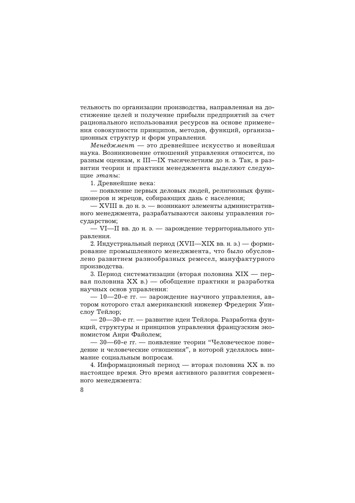 В учебном пособии рассматриваются базовые положения курса “Менеджмент”, систематизированные в четыре раздела: теоретико-методологические основы менеджмента, функции, технология менеджмента, человеческий фактор в управлении. Содержание глав указанных разделов включает цели, принципы, коммуникации, управленческие решения, кадры, психологию, этику менеджмента, оценку эффективности управления и др. Для студентов бакалавриата, а также практических работников и всех, кто интересуется основами менеджмента. Особенно полезно студентам заочной формы обучения.