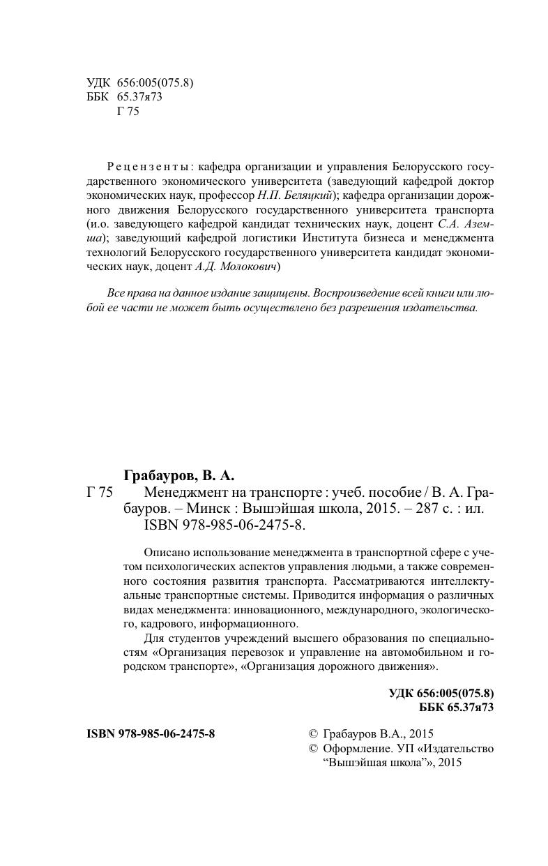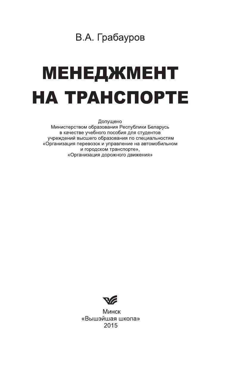 Гриф: Допущено Министерством образования Республики Беларусь в качестве учебного пособия для студентов учреждений высшего образования по специальностям "Организация перевозок и управление на автомобильном и городском транспорте", "Организация дорожного движения"