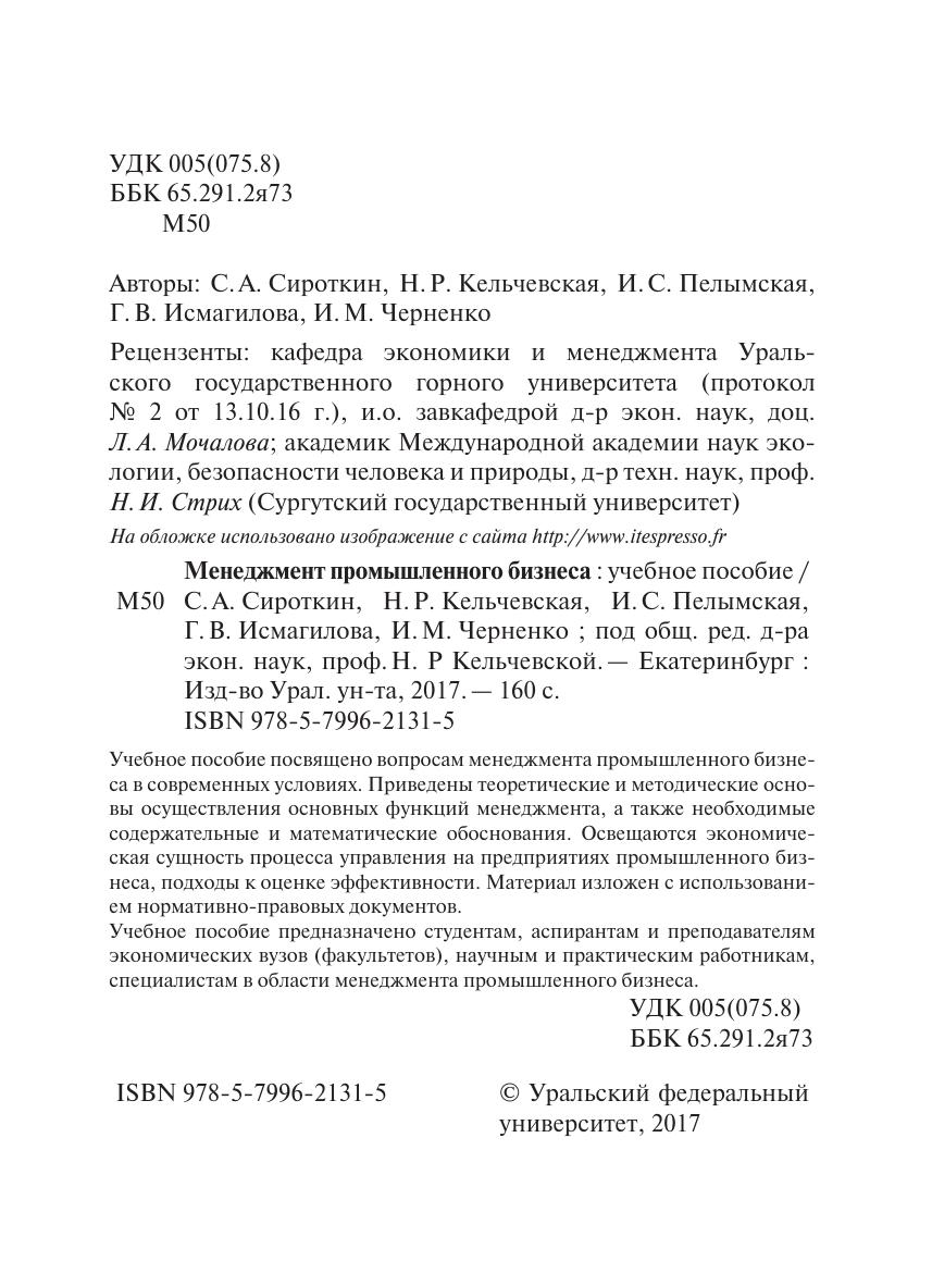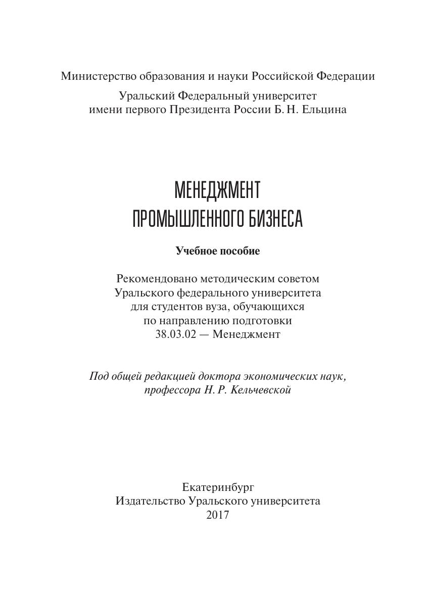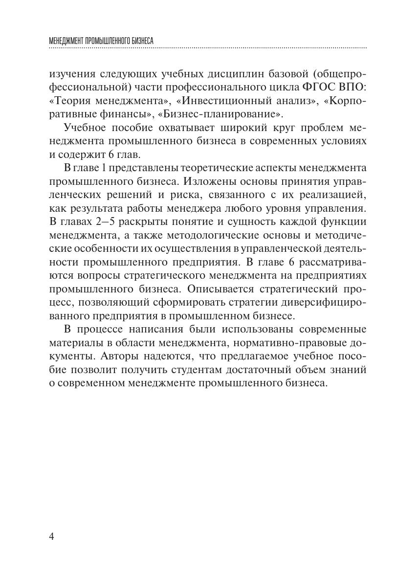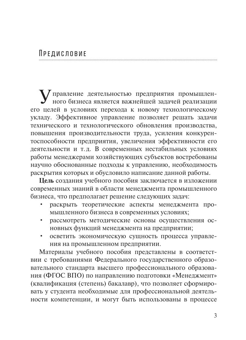 Учебное пособие посвящено вопросам менеджмента промышленного бизнеса в современных условиях. Приведены теоретические и методические основы осуществления основных функций менеджмента, а также необходимые содержательные и математические обоснования. Освещаются экономическая сущность процесса управления на предприятиях промышленного бизнеса, подходы к оценке эффективности. Материал изложен с использованием нормативно-правовых документов. Учебное пособие предназначено студентам, аспирантам и преподавателям экономических вузов (факультетов), научным и практическим работникам, специалистам в области менеджмента промышленного бизнеса.
