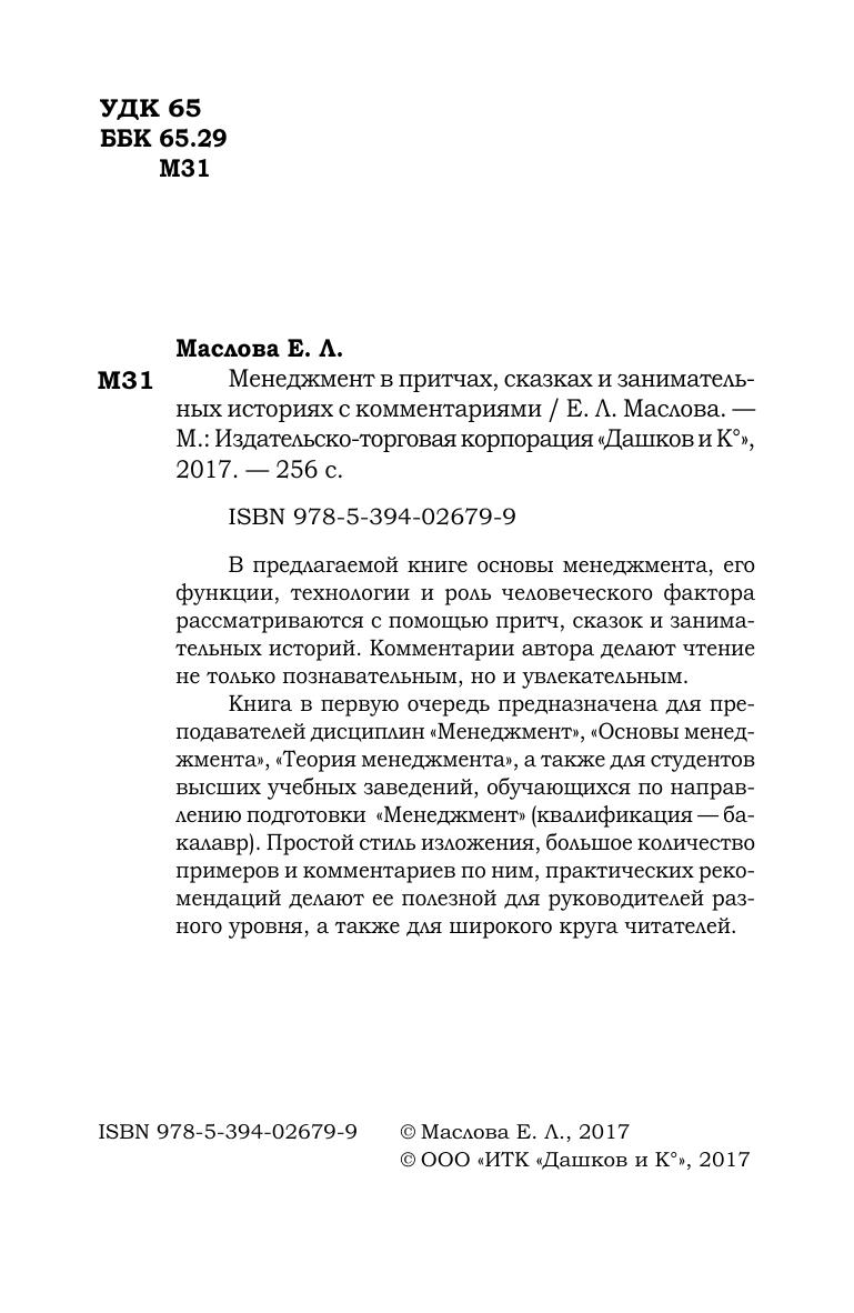 В предлагаемой книге основы менеджмента, его функции, технологии и роль человеческого фактора рассматриваются с помощью притч, сказок и занимательных историй. Комментарии автора делают чтение не только познавательным, но и увлекательным.
