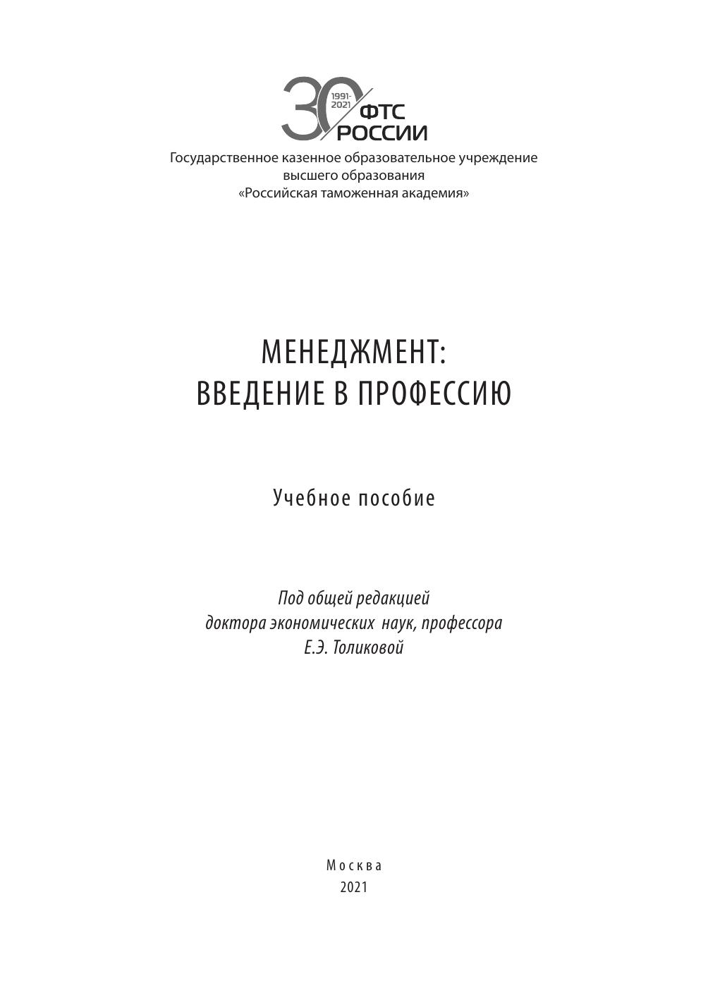 Учебное пособие подготовлено в соответствии с рабочей программой дисциплины «Введение в профессию», направление подготовки 38.03.02 «Менеджмент», направленность (профиль) «Финансовый менеджмент».