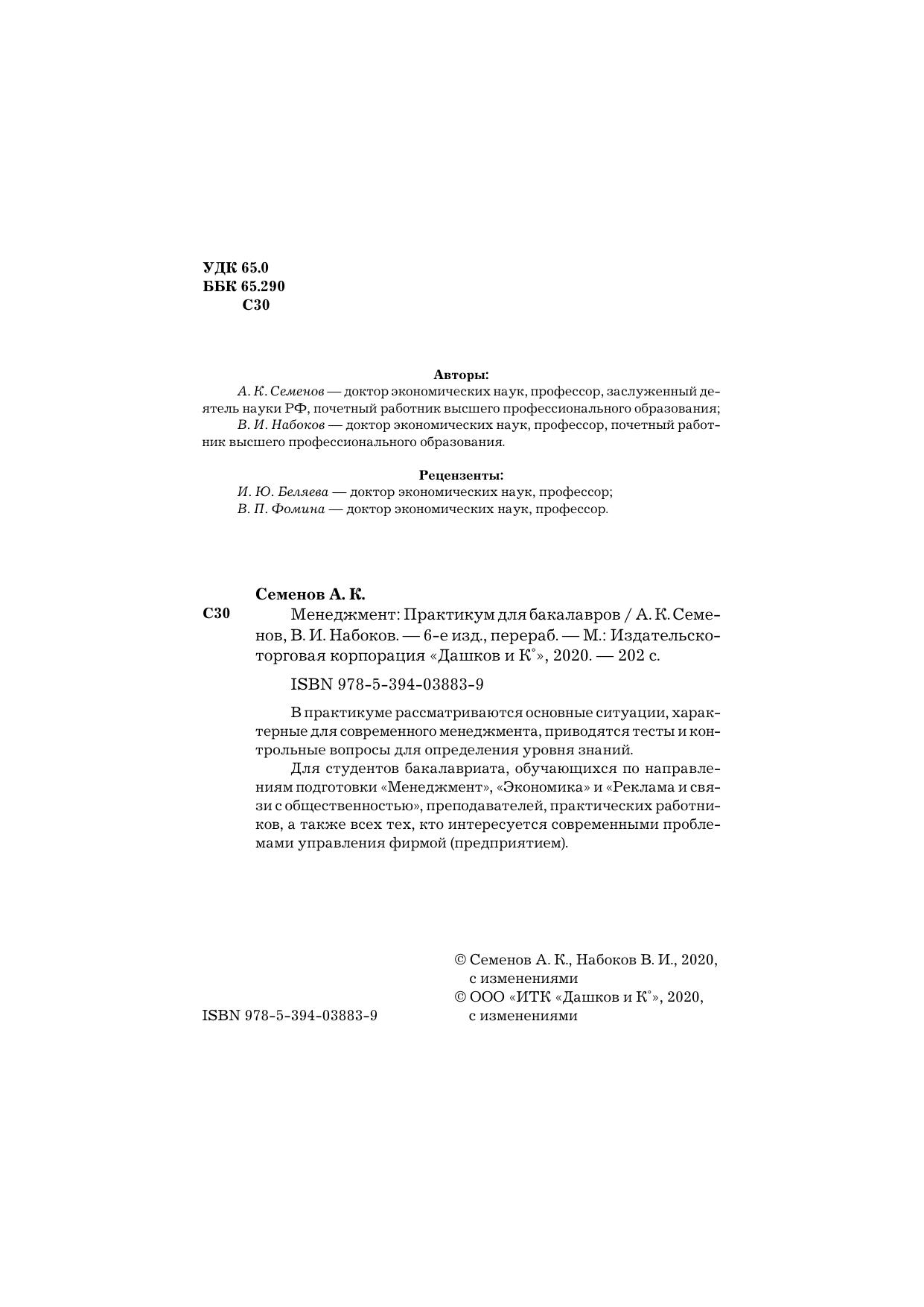 В практикуме рассматриваются основные ситуации, характерные для современного менеджмента, приводятся тесты и контрольные вопросы для определения уровня знаний.