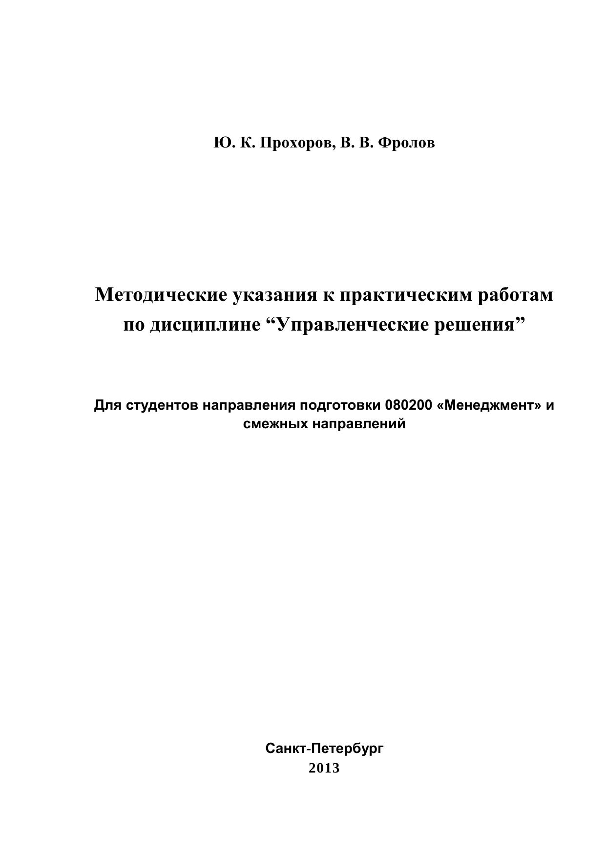 Методические указания к практическим работам по дисциплине Управленческие решения