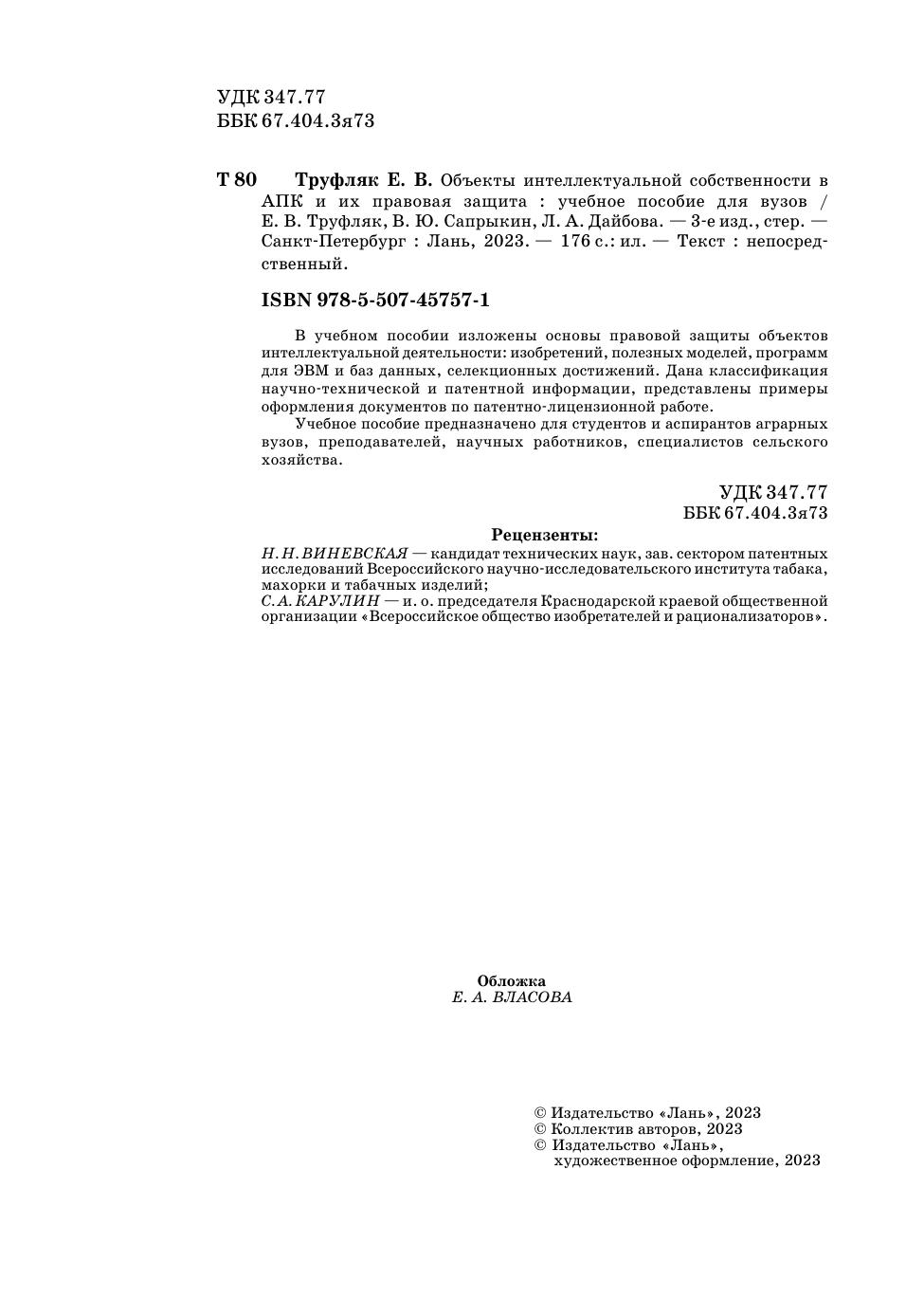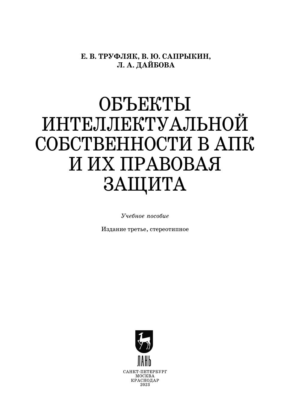 Авторы: Труфляк Е. В., Сапрыкин В. Ю., Дайбова Л. А.