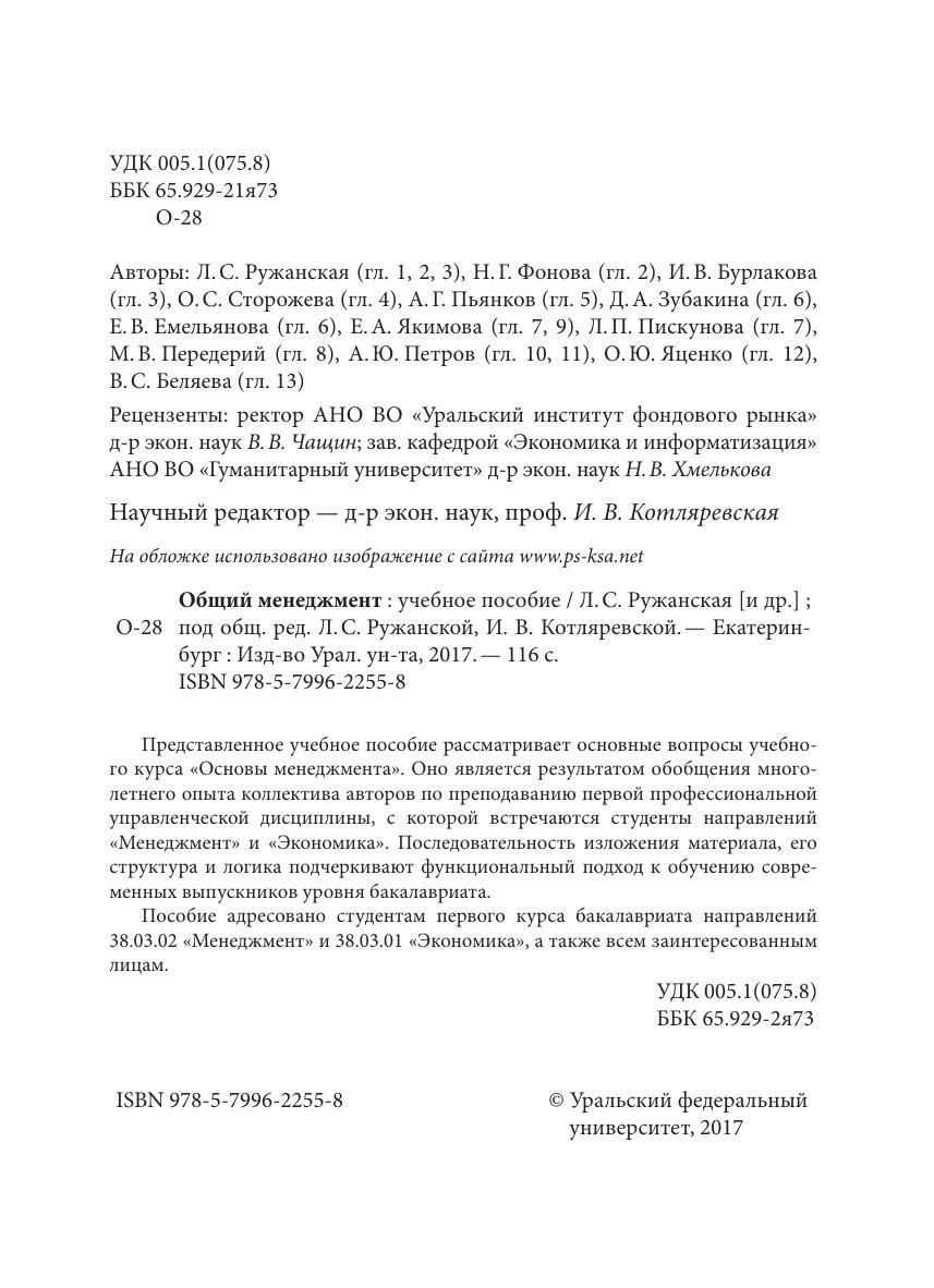 Представленное учебное пособие рассматривает основные вопросы учебного курса «Основы менеджмента». Оно является результатом обобщения многолетнего опыта коллектива авторов по преподаванию первой профессиональной управленческой дисциплины, с которой встречаются студенты направлений «Менеджмент» и «Экономика». Последовательность изложения материала, его структура и логика подчеркивают функциональный подход к обучению современных выпускников уровня бакалавриата. Пособие адресовано студентам первого курса бакалавриата направлений 38.03.02 «Менеджмент» и 38.03.01 «Экономика», а также всем заинтересованным лицам.