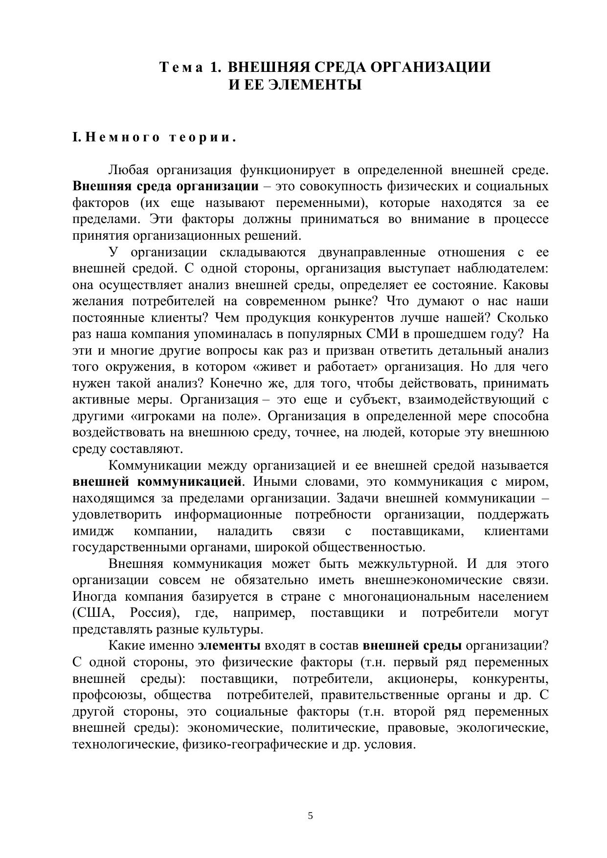 Пособие посвящено вопросам внешней коммуникации организации и предназначено для аудиторной и самостоятельной работы студентов. Его цель – углубление и закрепление знаний о различных факторах внешней среды организации, а также развитие умения решать практические задачи, связанные с профессиональной деятельностью менеджера по коммуникации.