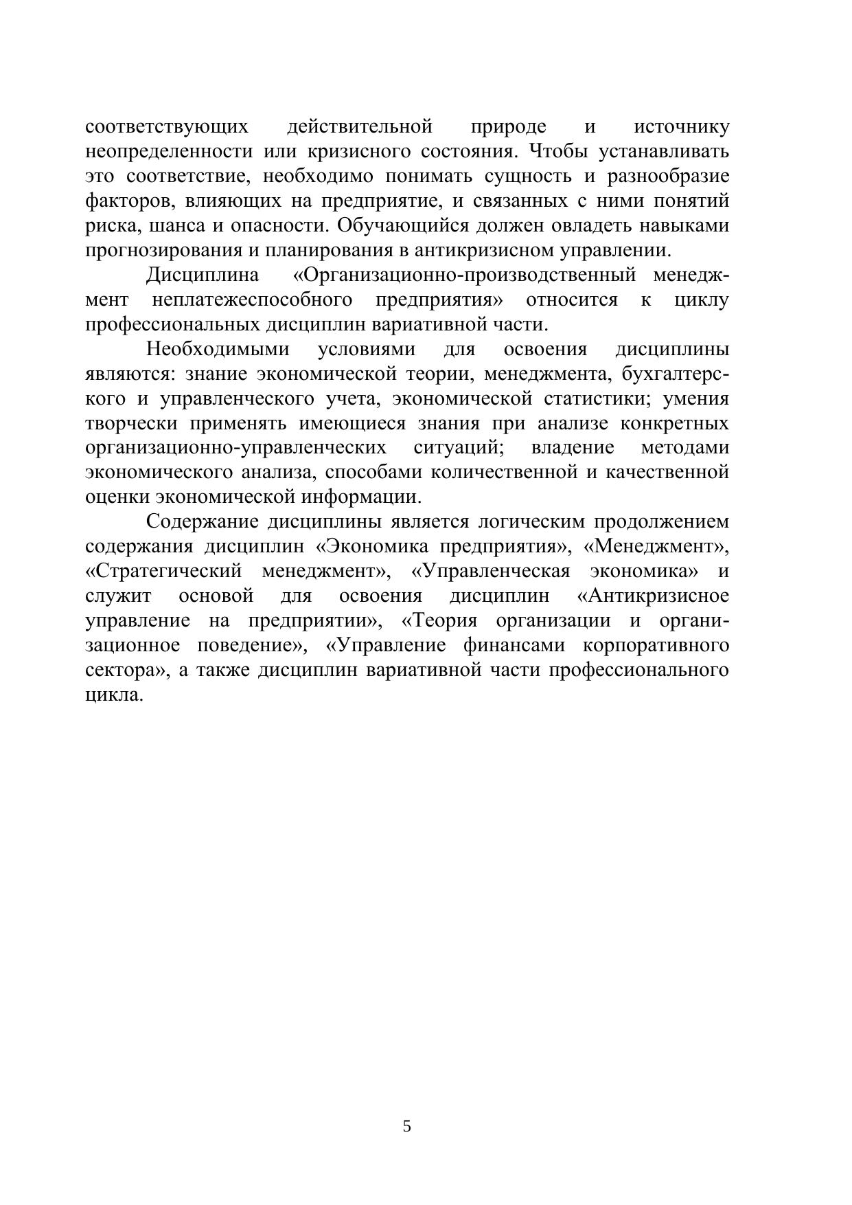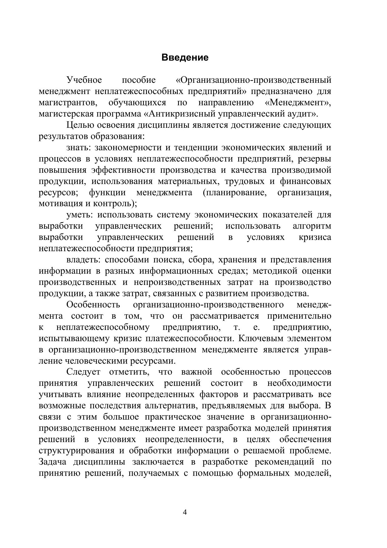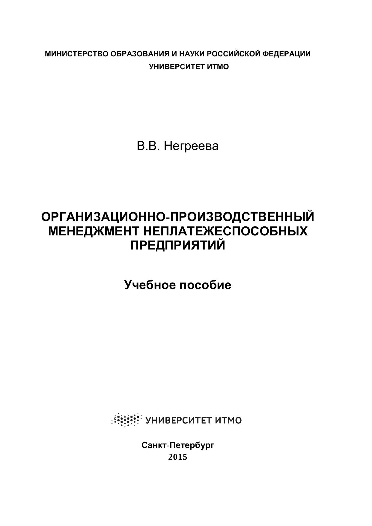 Организационно-производственный менеджмент неплатежеспособных предприятий: учебное пособие