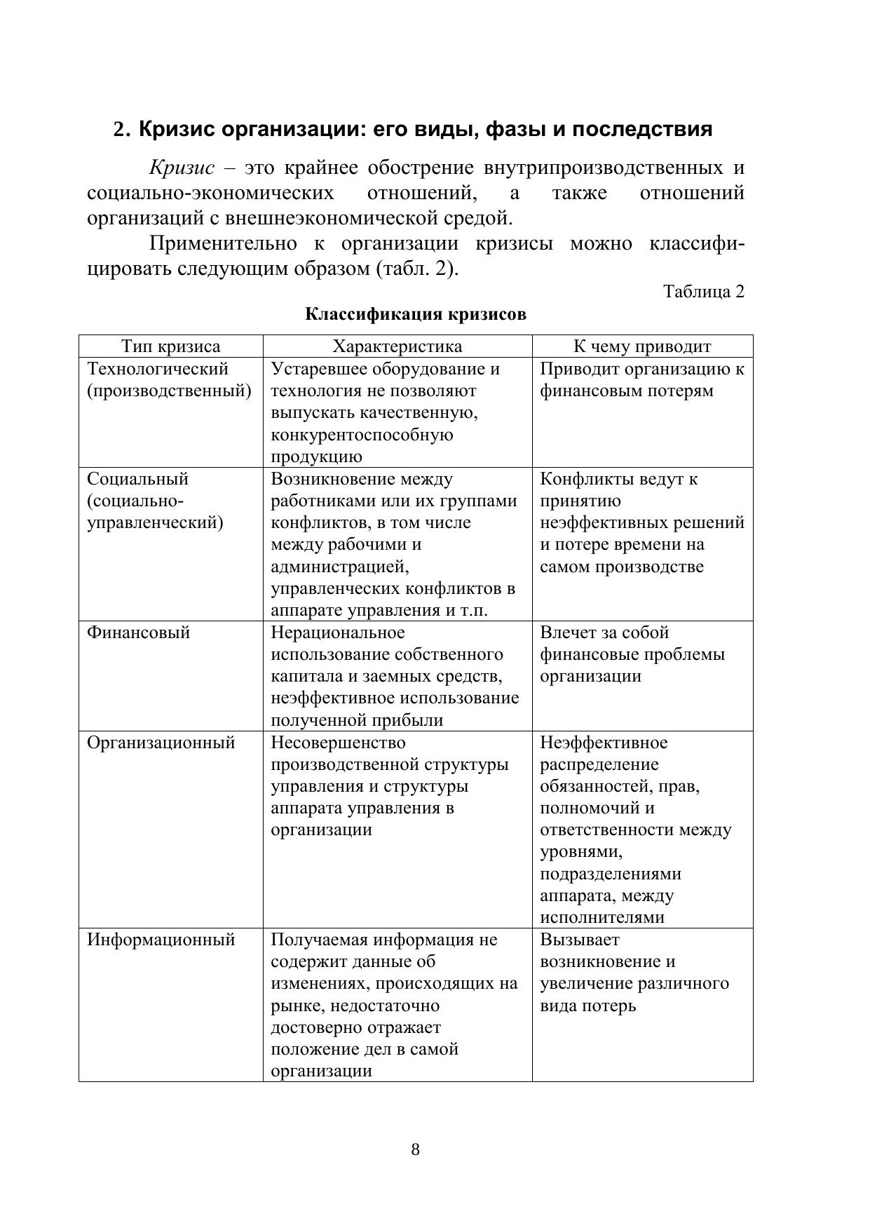 Рассмотрены виды и причины возникновения кризисов на предприятиях, меры по их преодолению. Предназначено для самостоятельной работы магистрантов направления 38.04.02 Менеджмент по профилю Антикризисный управленческий аудит по дисциплине «Организационно-производственный менеджмент неплатежеспособного предприятия» очной и заочной форм обучения.