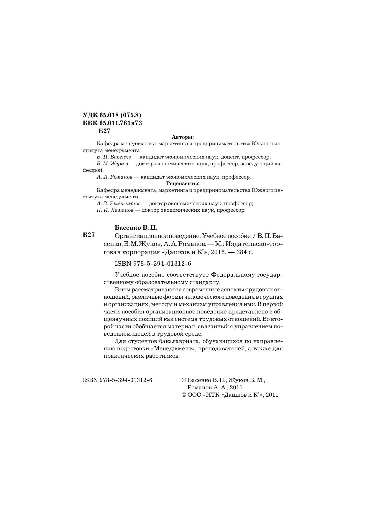 Учебное пособие соответствует государственному образовательному стандарту. В нем рассматриваются современные аспекты трудовых отношений, различные формы человеческого поведения в группах и организациях, методы и механизм управления ими. В первой части пособия организационное поведение представлено с общенаучных позиций как система трудовых отношений. Во второй части обобщается материал, связанный с управлением поведением людей в трудовой среде.