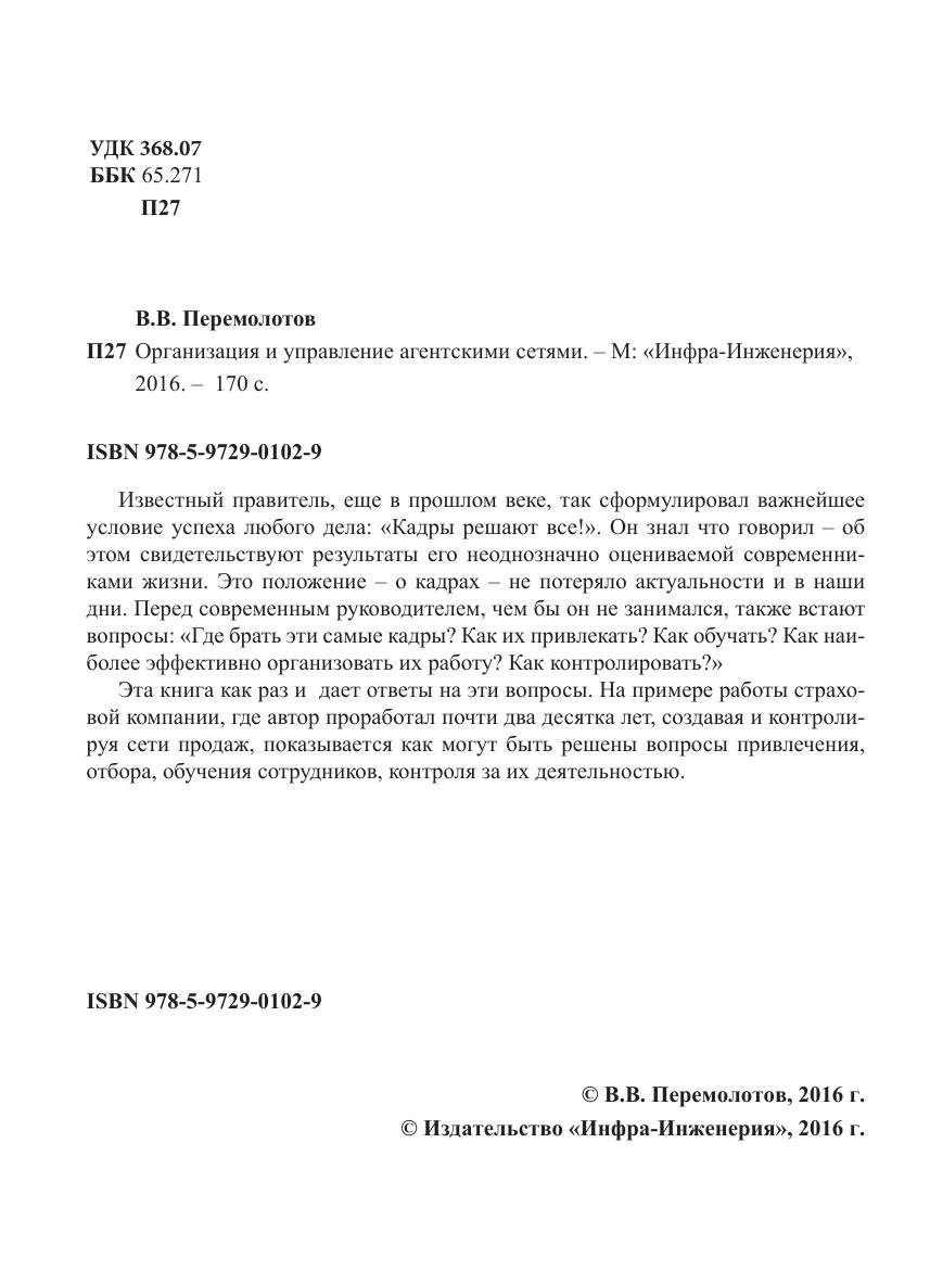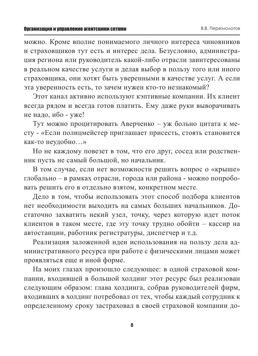 Известный правитель, еще в прошлом веке, так сформулировал важнейшее условие успеха любого дела: «Кадры решают все!». Он знал что говорил – об этом свидетельствуют результаты его неоднозначно оцениваемой современниками жизни. Это положение – о кадрах – не потеряло актуальности и в наши дни. Перед современным руководителем, чем бы он не занимался, также встают вопросы: «Где брать эти самые кадры? Как их привлекать? Как обучать? Как наиболее эффективно организовать их работу? Как контролировать?» Эта книга как раз и дает ответы на эти вопросы. На примере работы страховой компании, где автор проработал почти два десятка лет, создавая и контролируя сети продаж, показывается как могут быть решены вопросы привлечения, отбора, обучения сотрудников, контроля за их деятельностью.