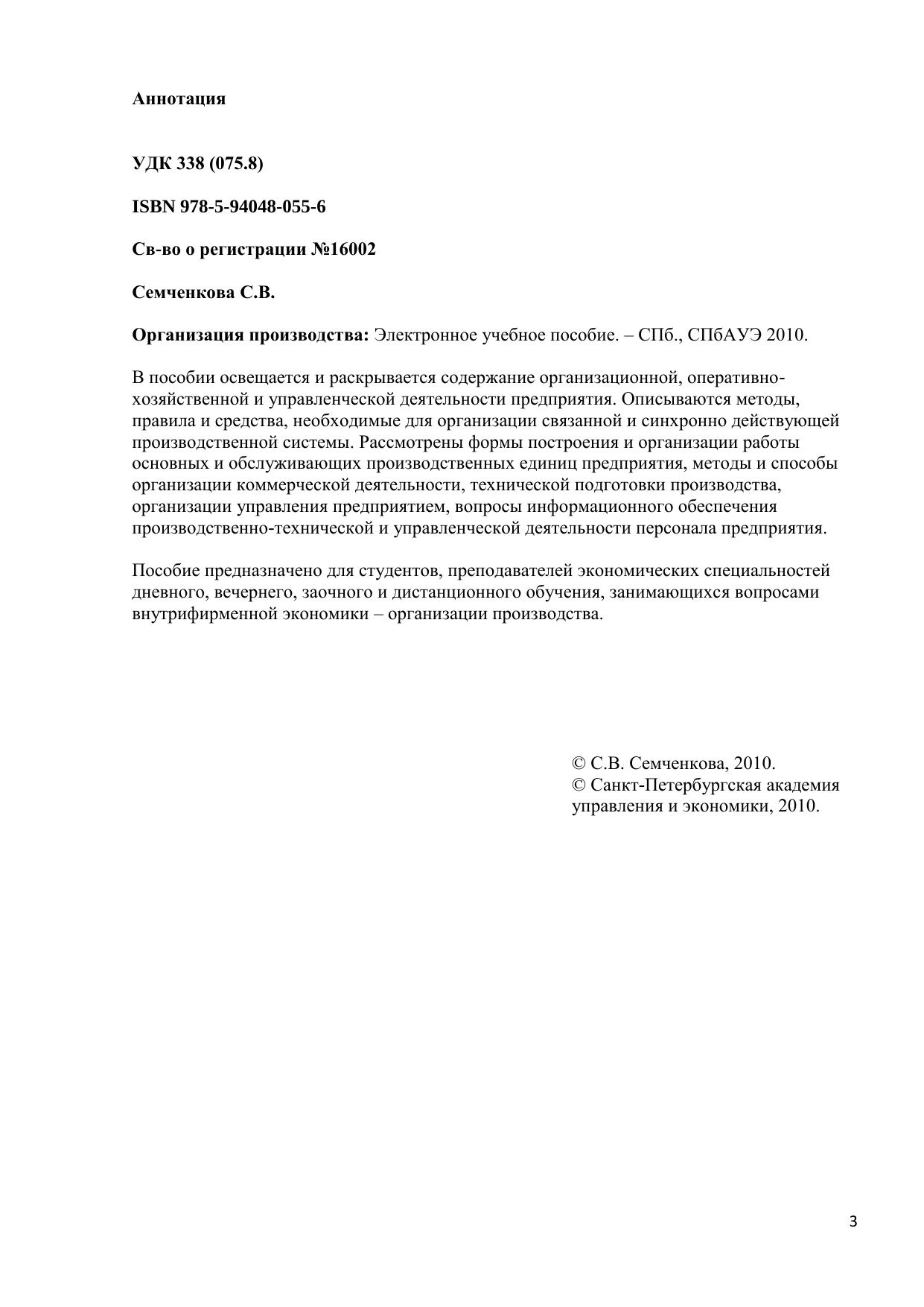 В пособии освещается и раскрывается содержание организационной, оперативно-хозяйственной и управленческой деятельности предприятия. Описываются методы, правила и средства, необходимые для организации, связанной и синхронно действующей производственной системы. Рассмотрены формы построения и организации работы основных и обслуживающих производственных единиц предприятия, методы и способы организации коммерческой деятельности, технической подготовки производства, организации управления предприятием, вопросы информационного обеспечения производственно-технической и управленческой деятельности персонала предприятия. Пособие предназначено для студентов, преподавателей экономических специальностей дневного, вечернего, заочного и дистанционного обучения, занимающихся вопросами внутрифирменной экономики – организации производства. Электронное учебное пособие для дистанционного обучения
